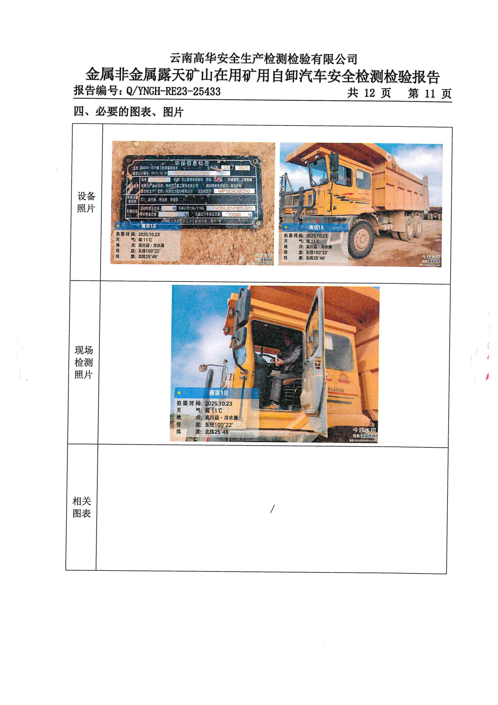 金属非金属露天矿山在用矿用自卸汽车安全检测检验报告