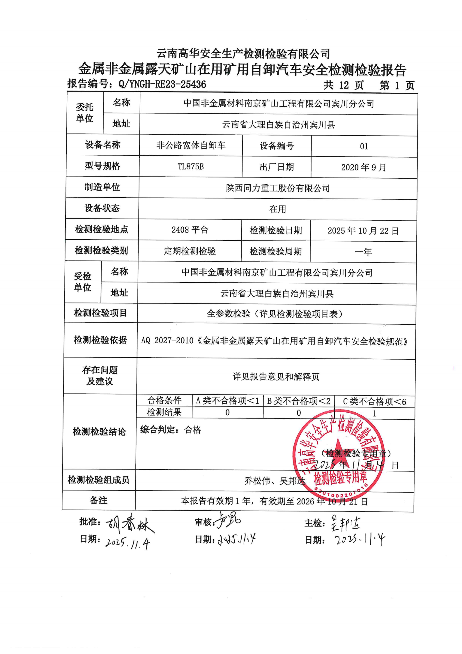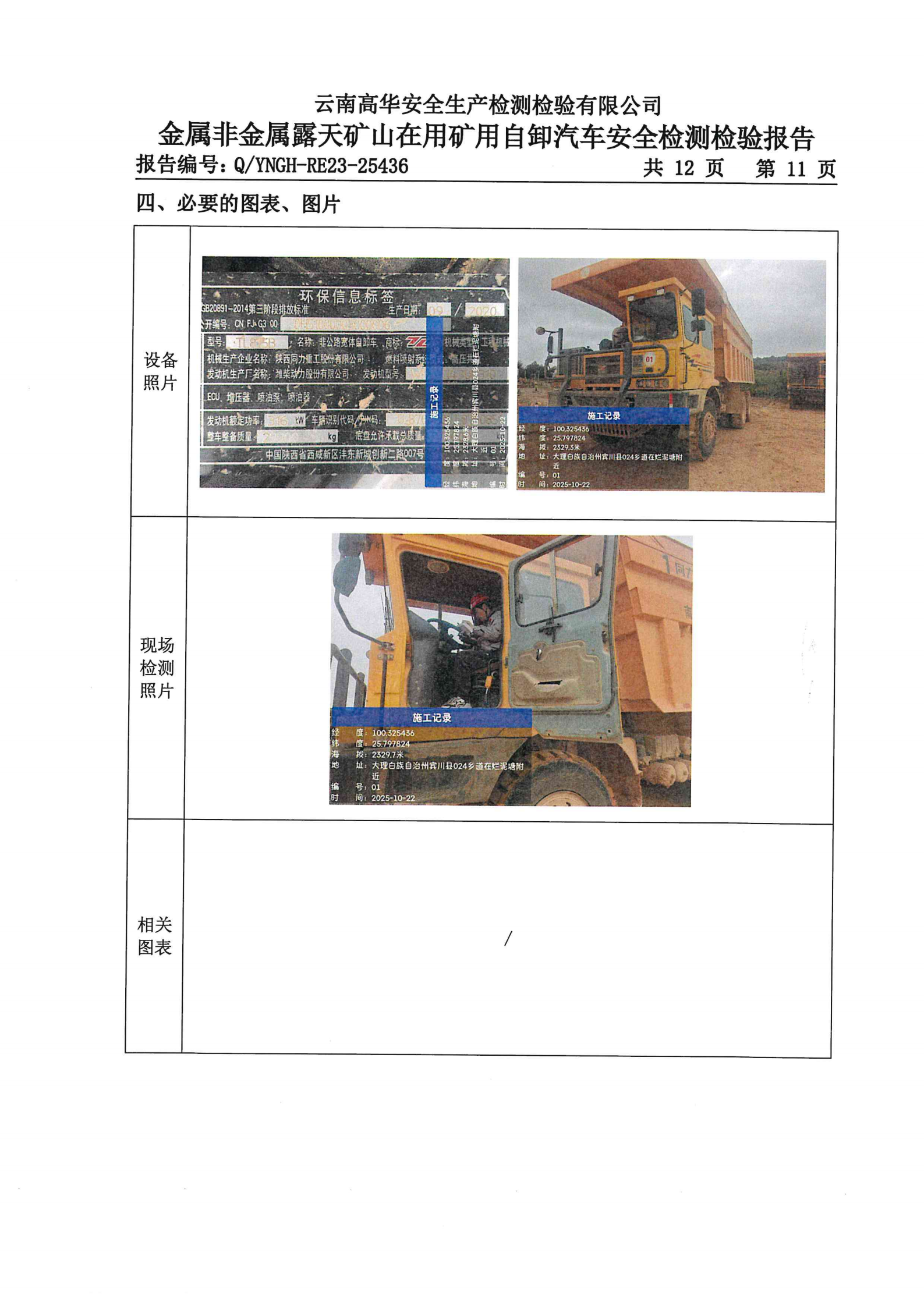 金属非金属露天矿山在用矿用自卸汽车安全检测检验报告