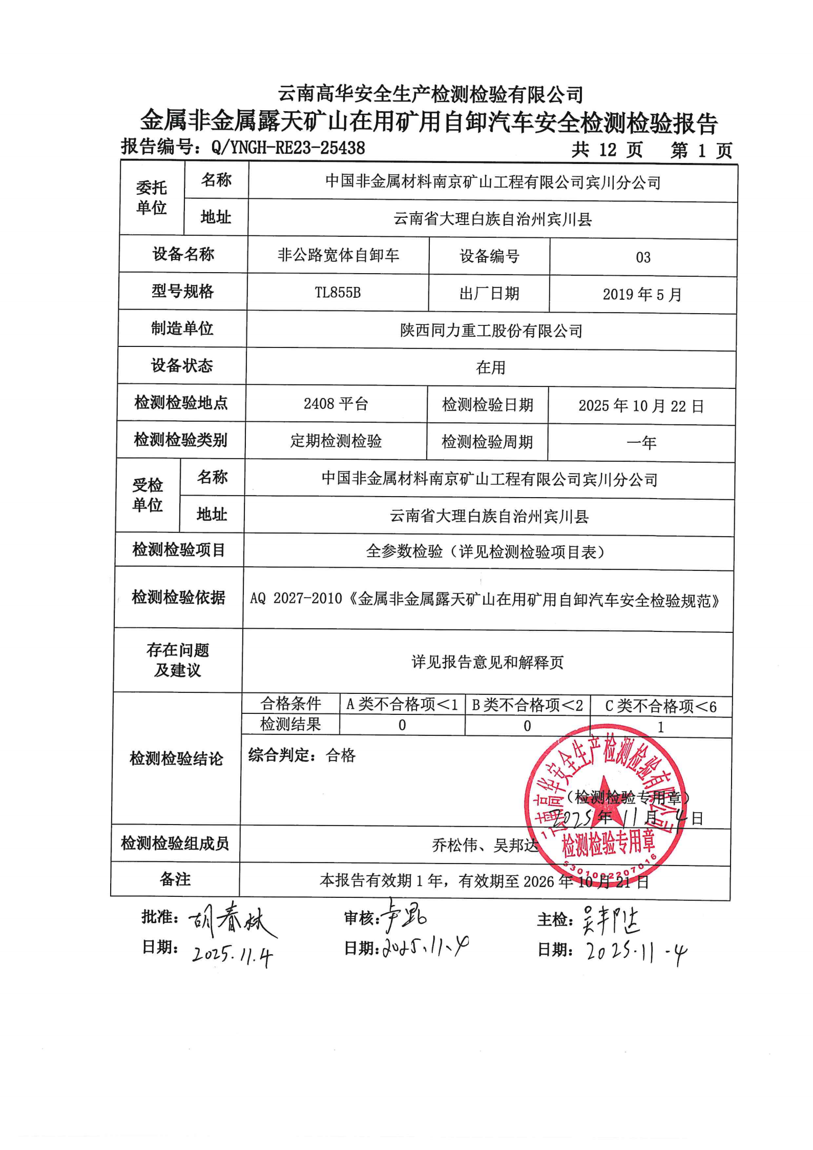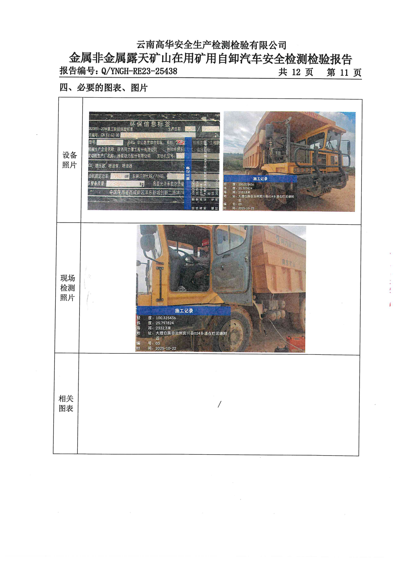 金属非金属露天矿山在用矿用自卸汽车安全检测检验报告