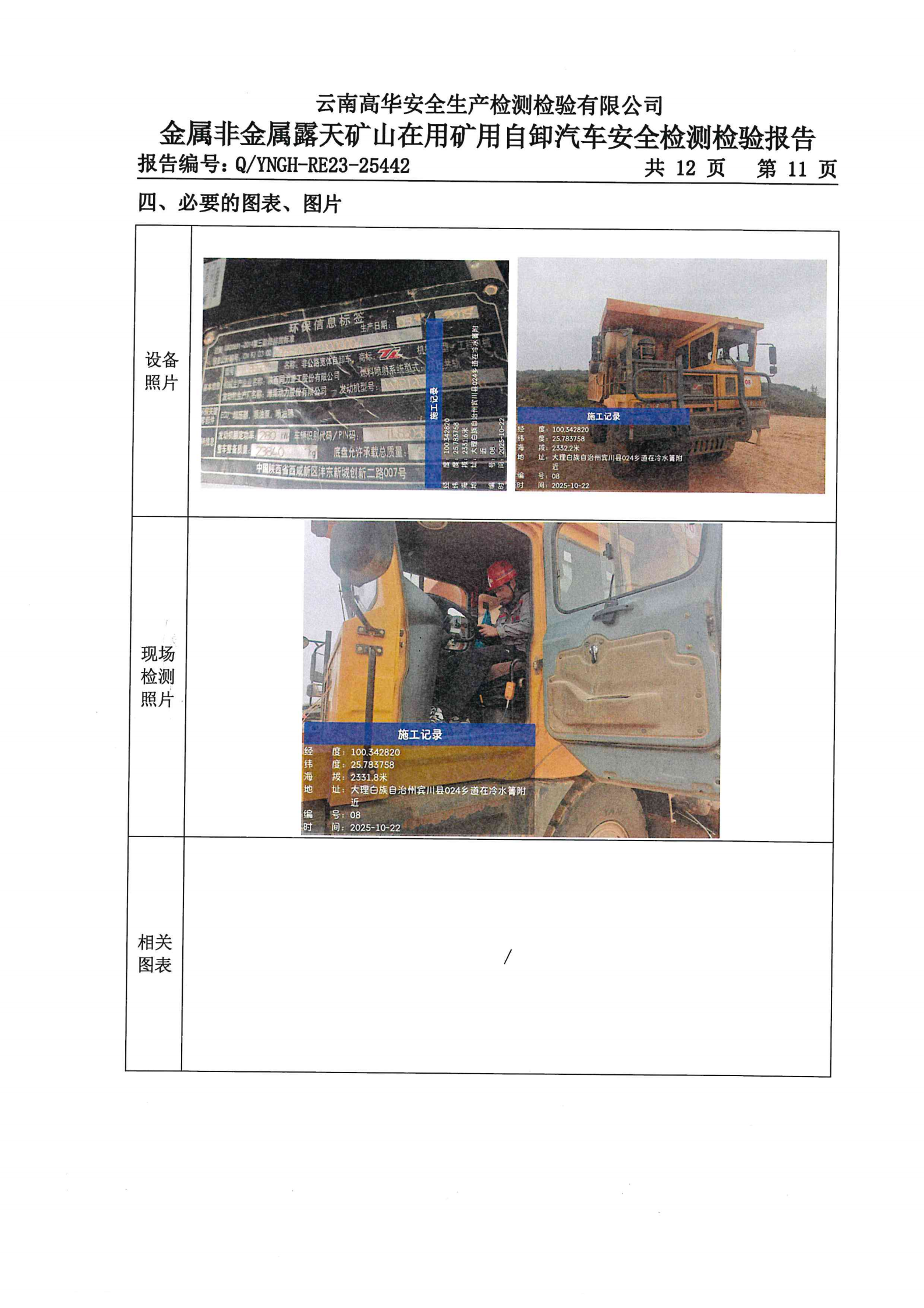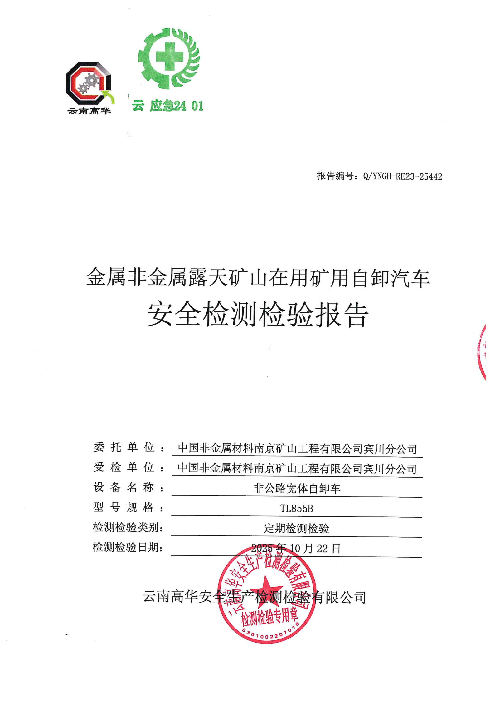 金属非金属露天矿山在用矿用自卸汽车安全检测检验报告