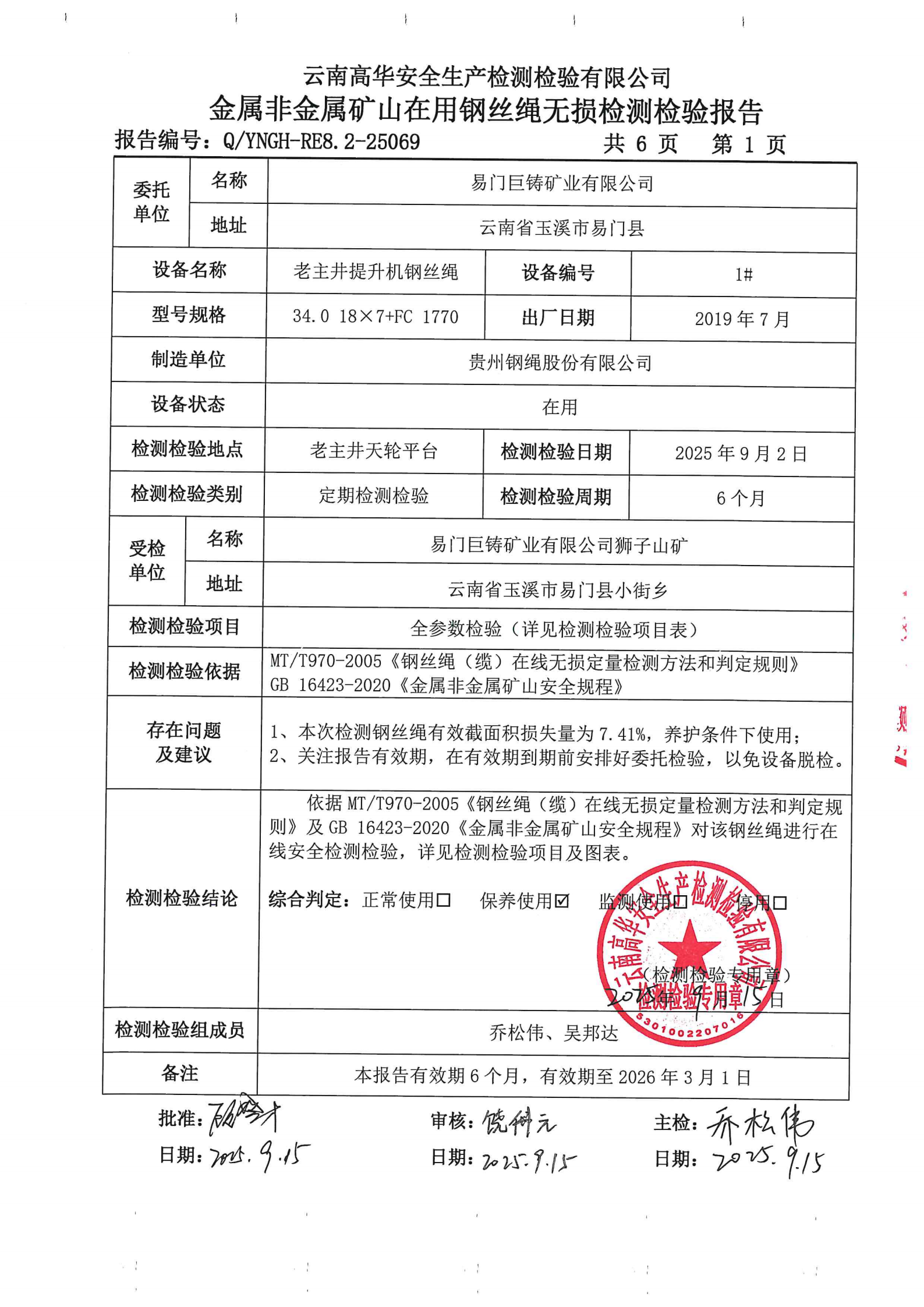 金属非金属矿山在用钢丝绳无损检测检验报告