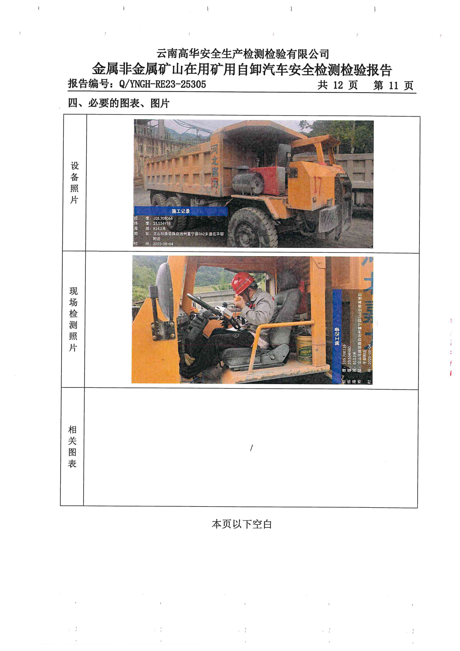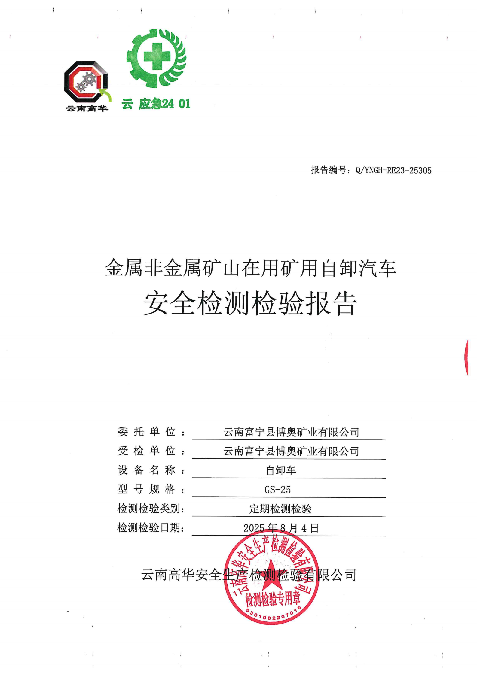 金属非金属矿山在用矿用自卸汽车安全检测检验报告