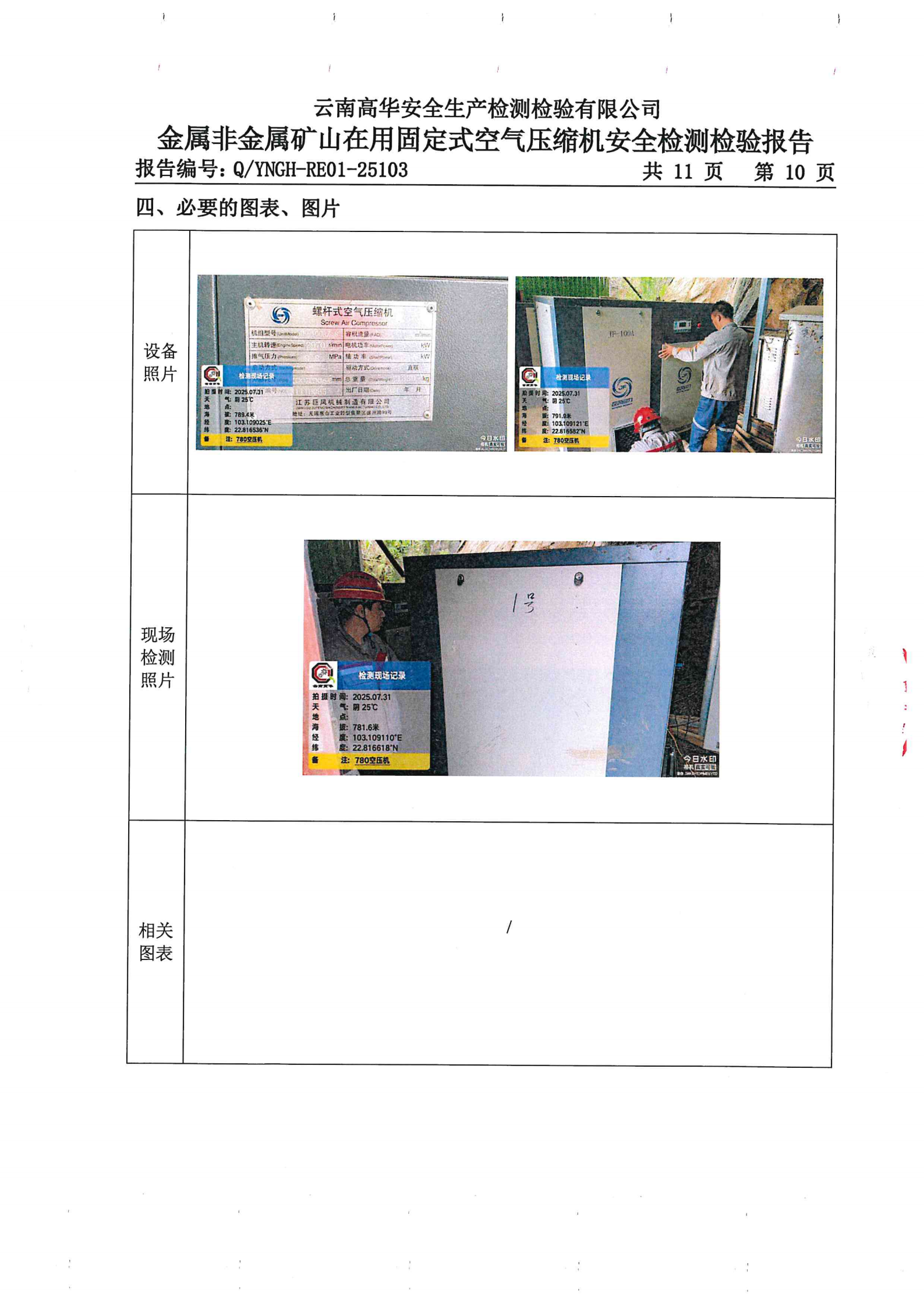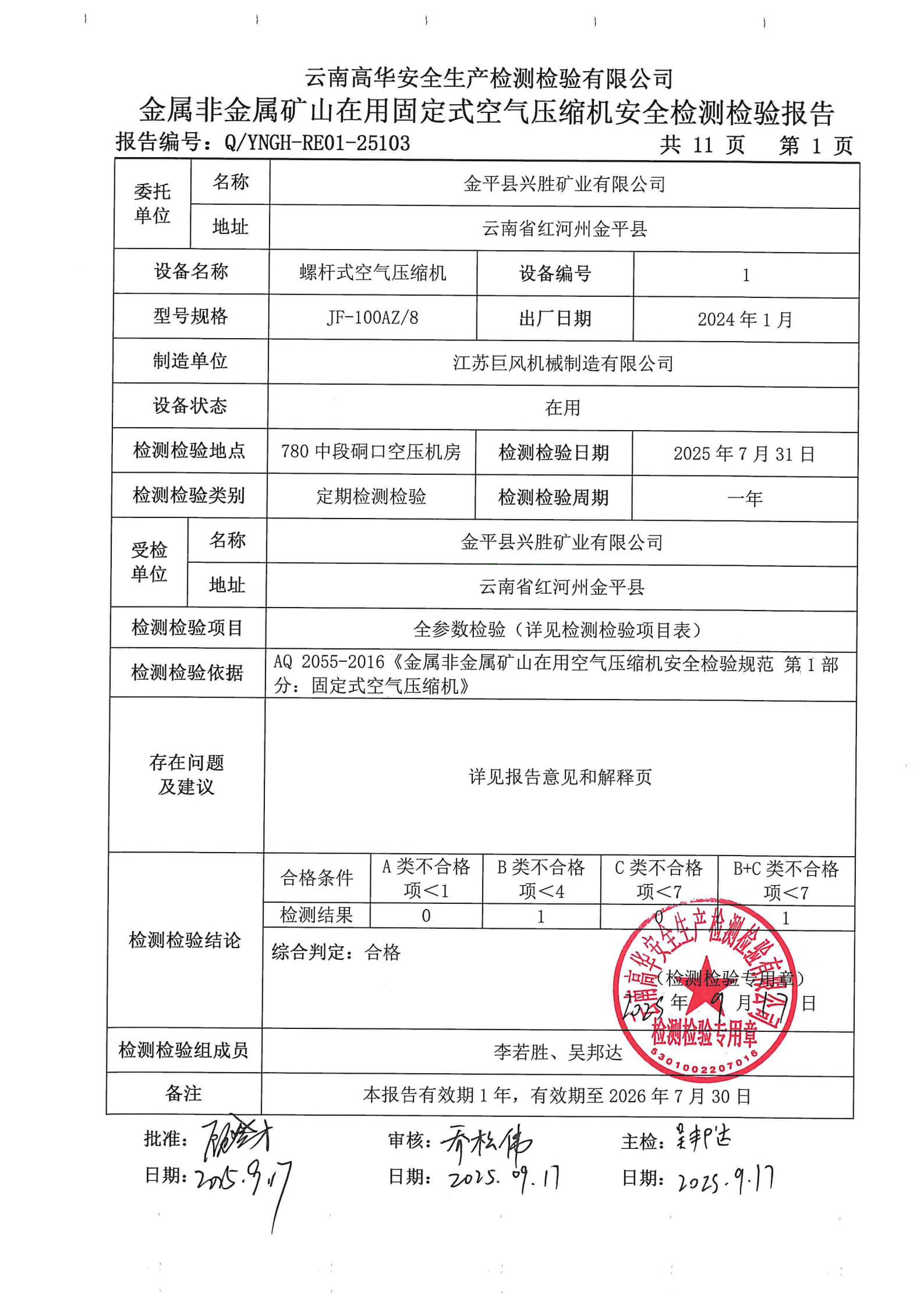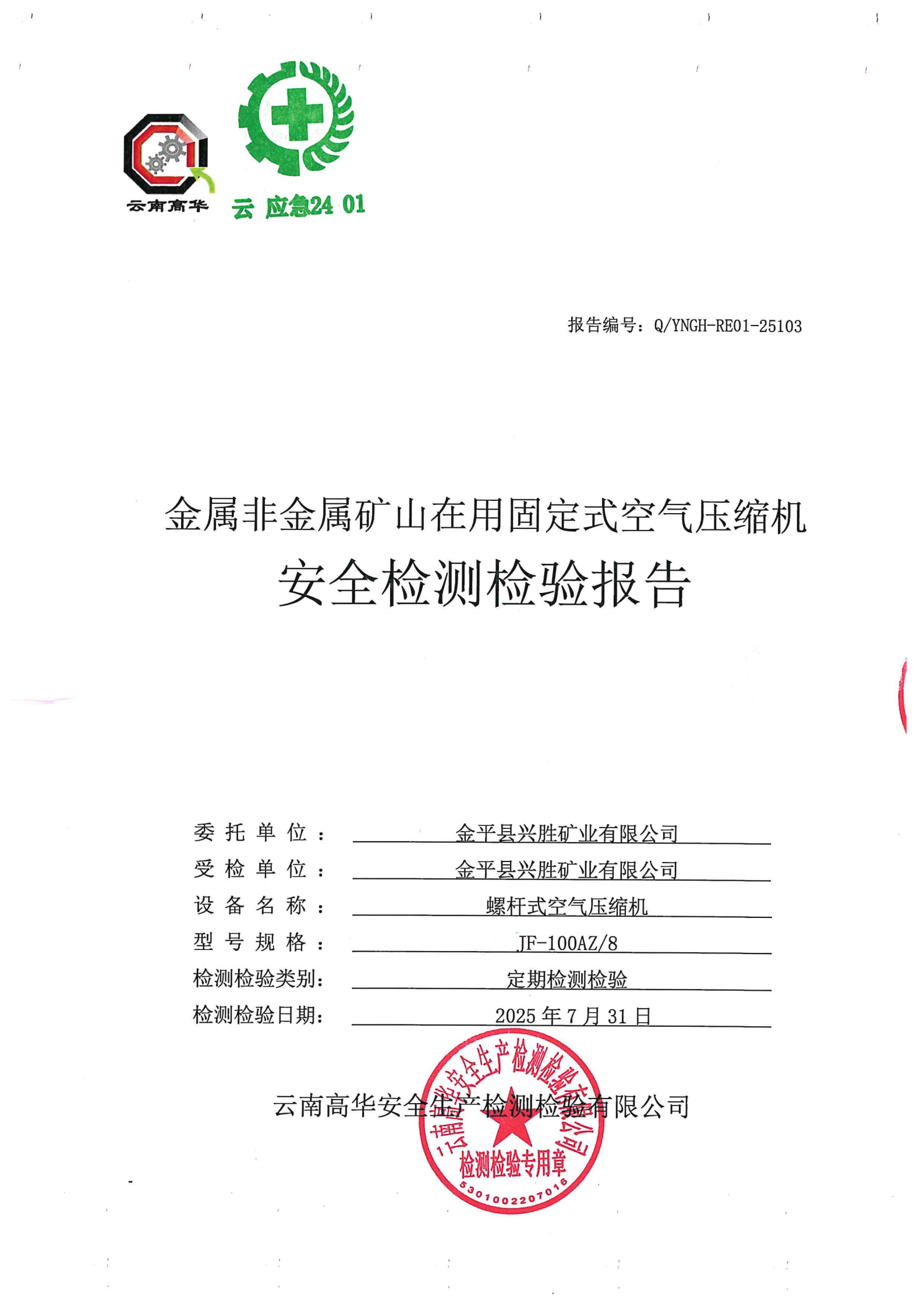金属非金属矿山在用固定式空气压缩机安全检测检验报告