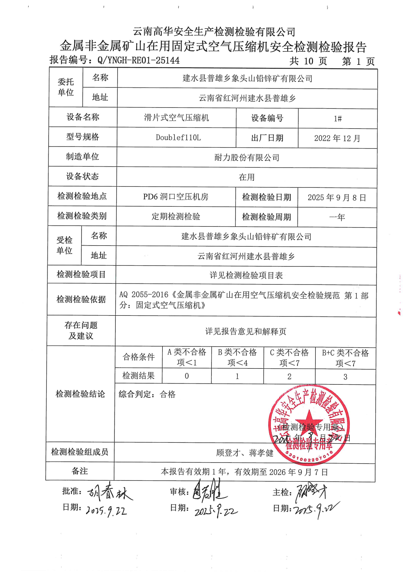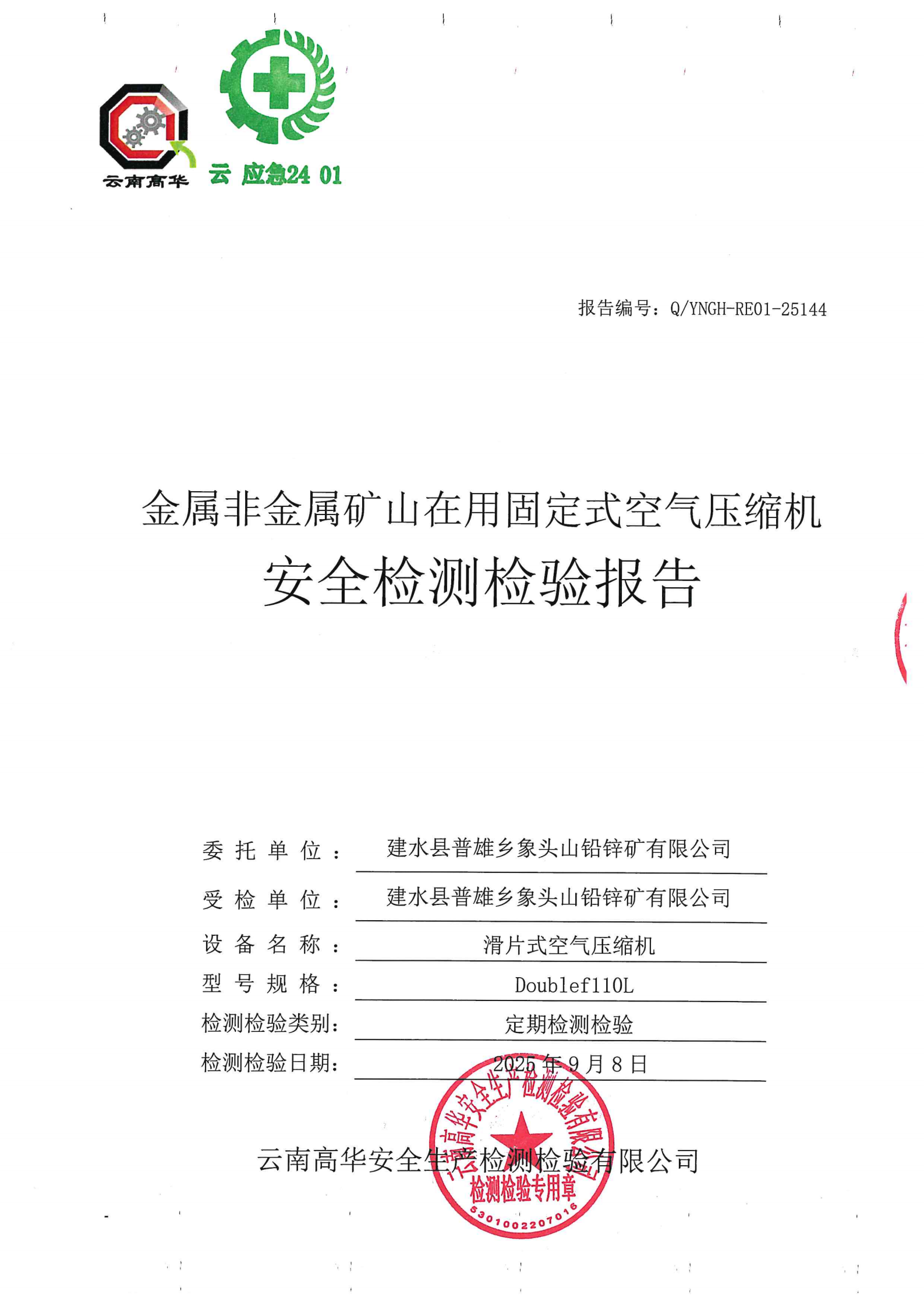 金属非金属矿山在用固定式空气压缩机安全检测检验报告