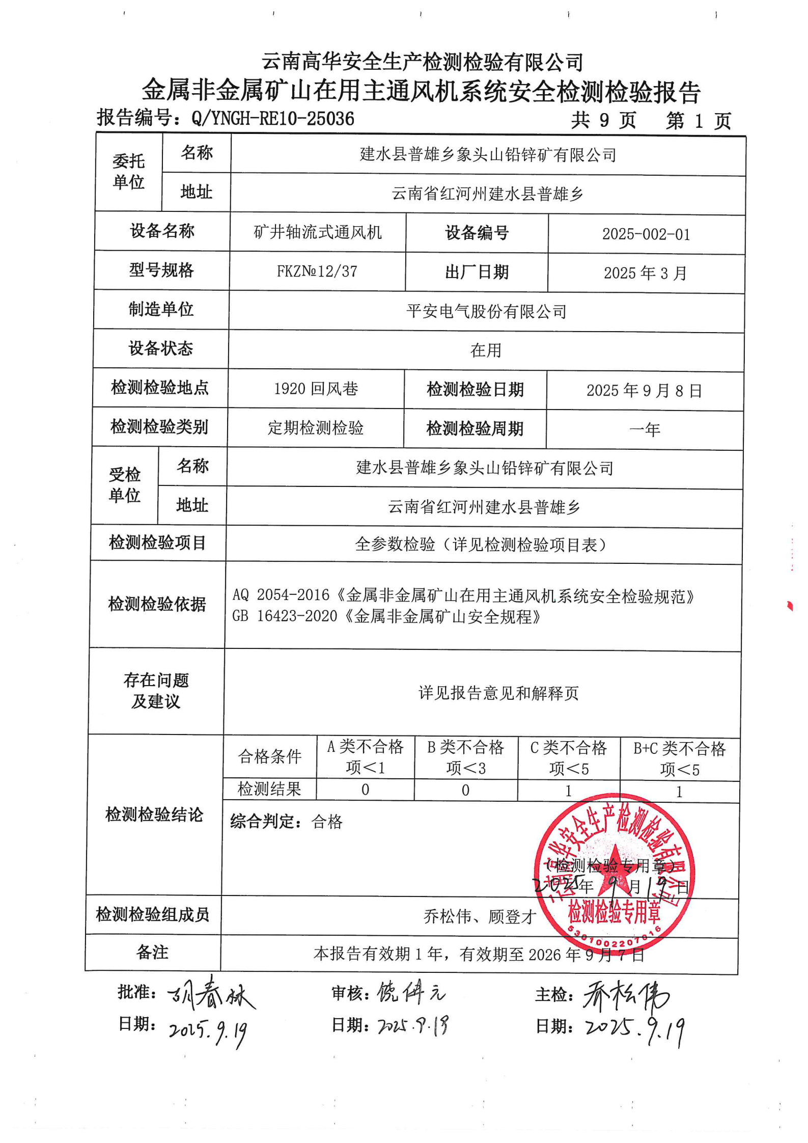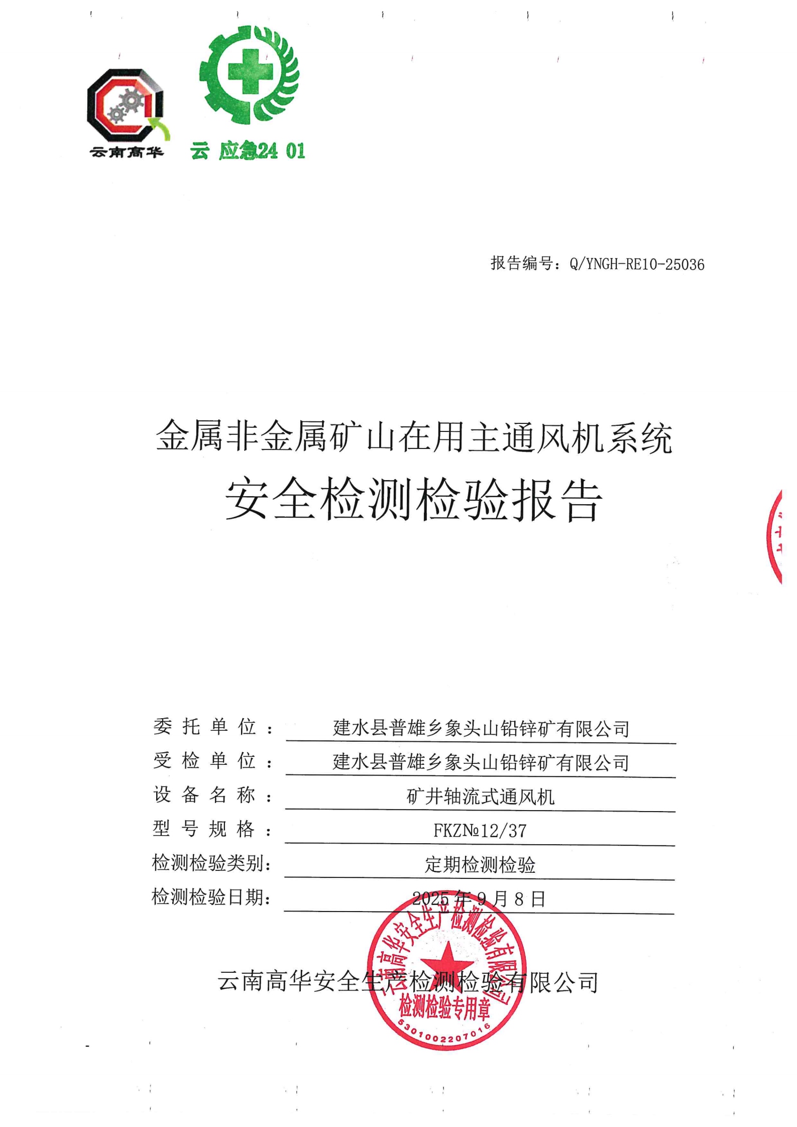 金属非金属矿山在用主通风机系统安全检测检验报告