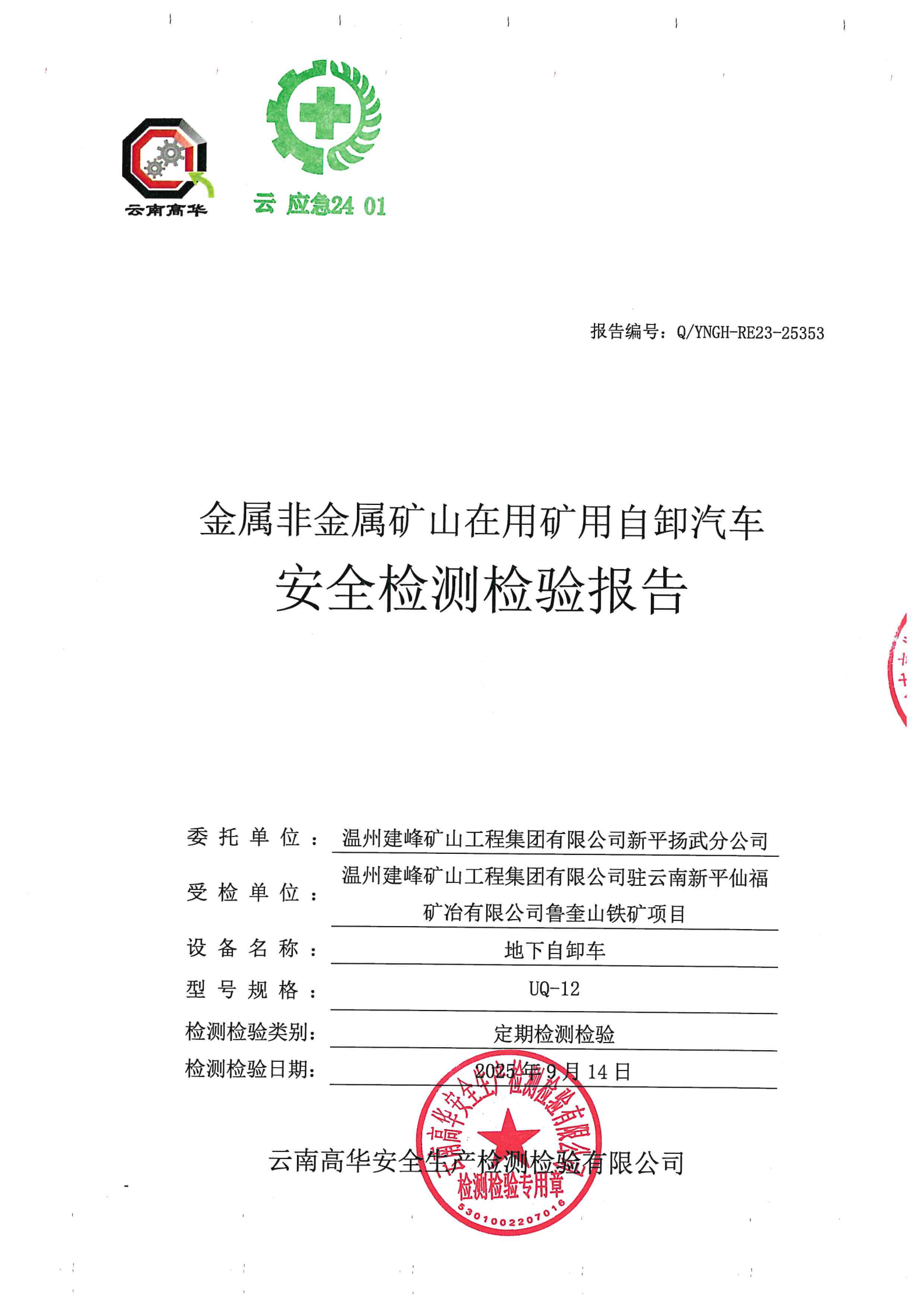 金属非金属矿山在用矿用自卸汽车安全检测检验报告
