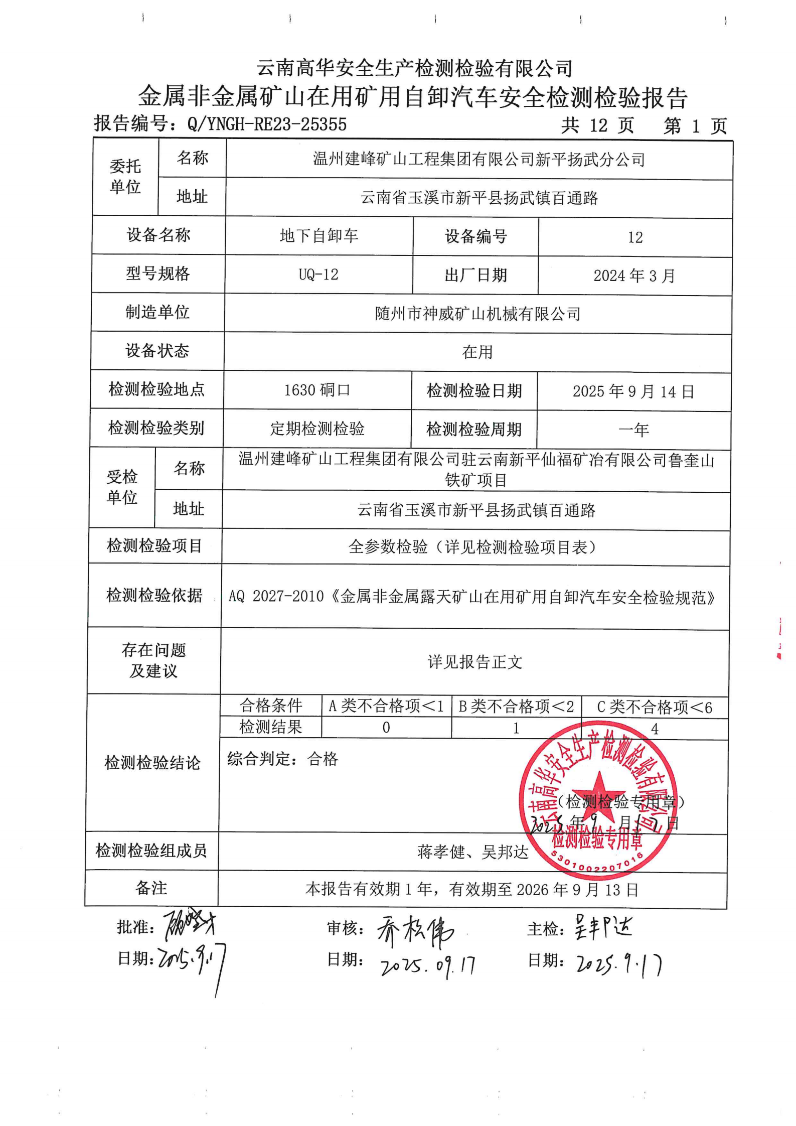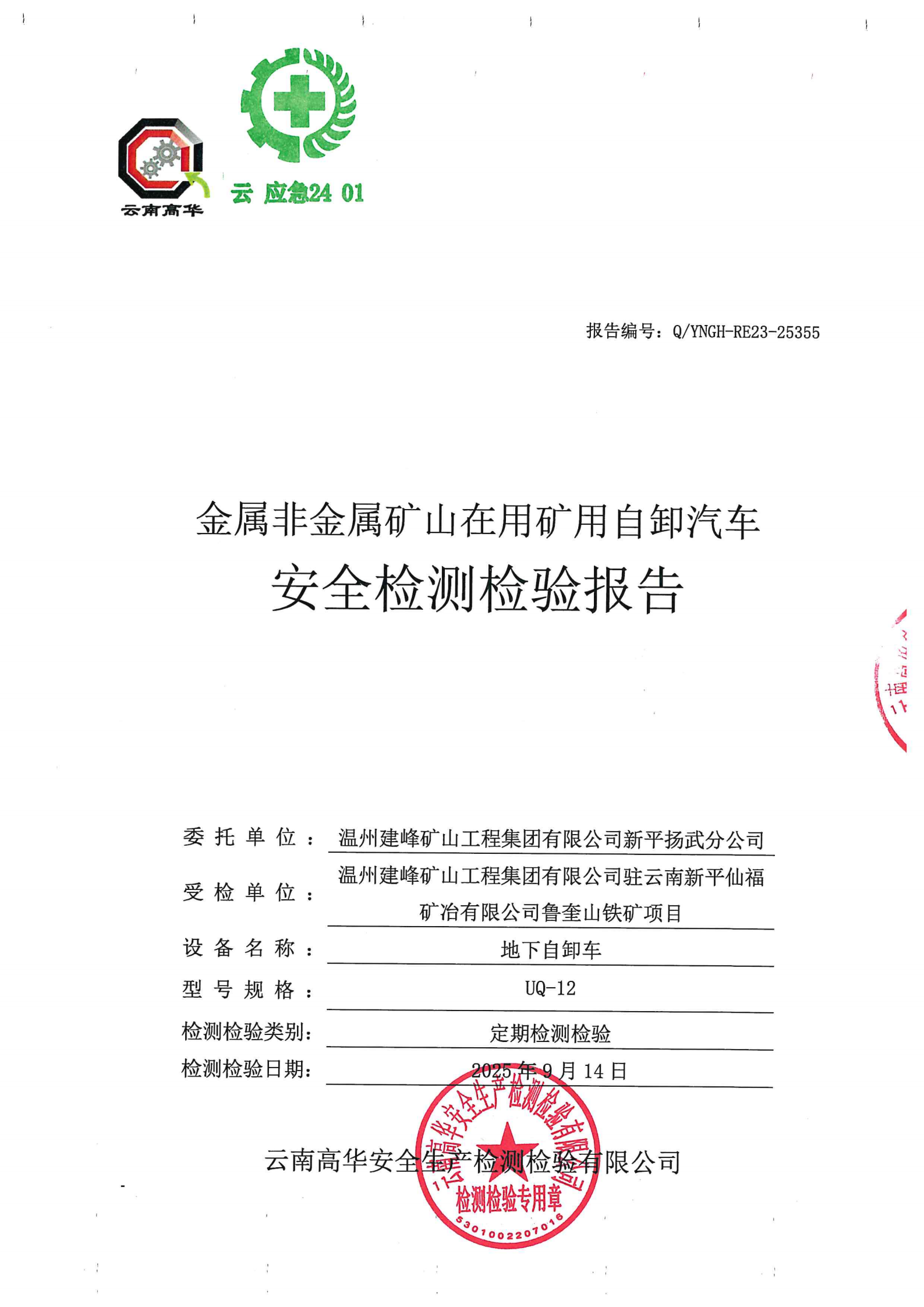 金属非金属矿山在用矿用自卸汽车安全检测检验报告