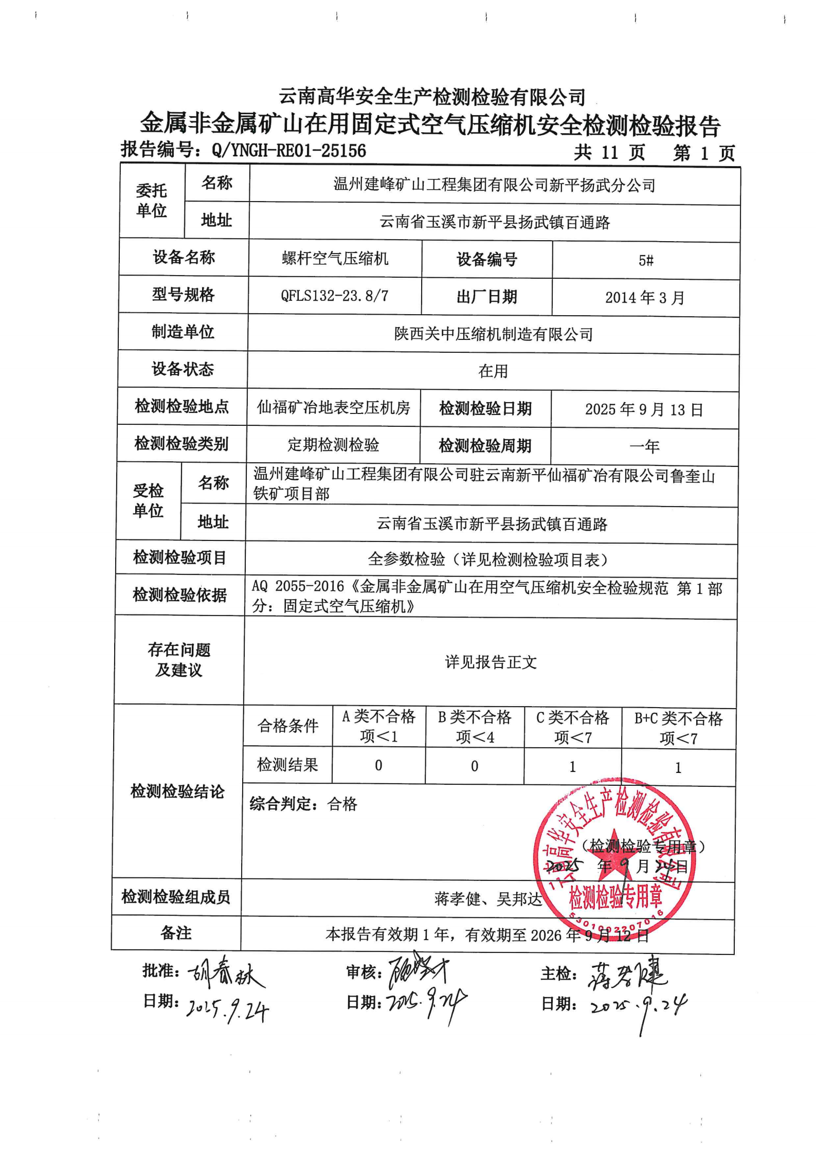 金属非金属矿山在用固定式空气压缩机安全检测检验报告