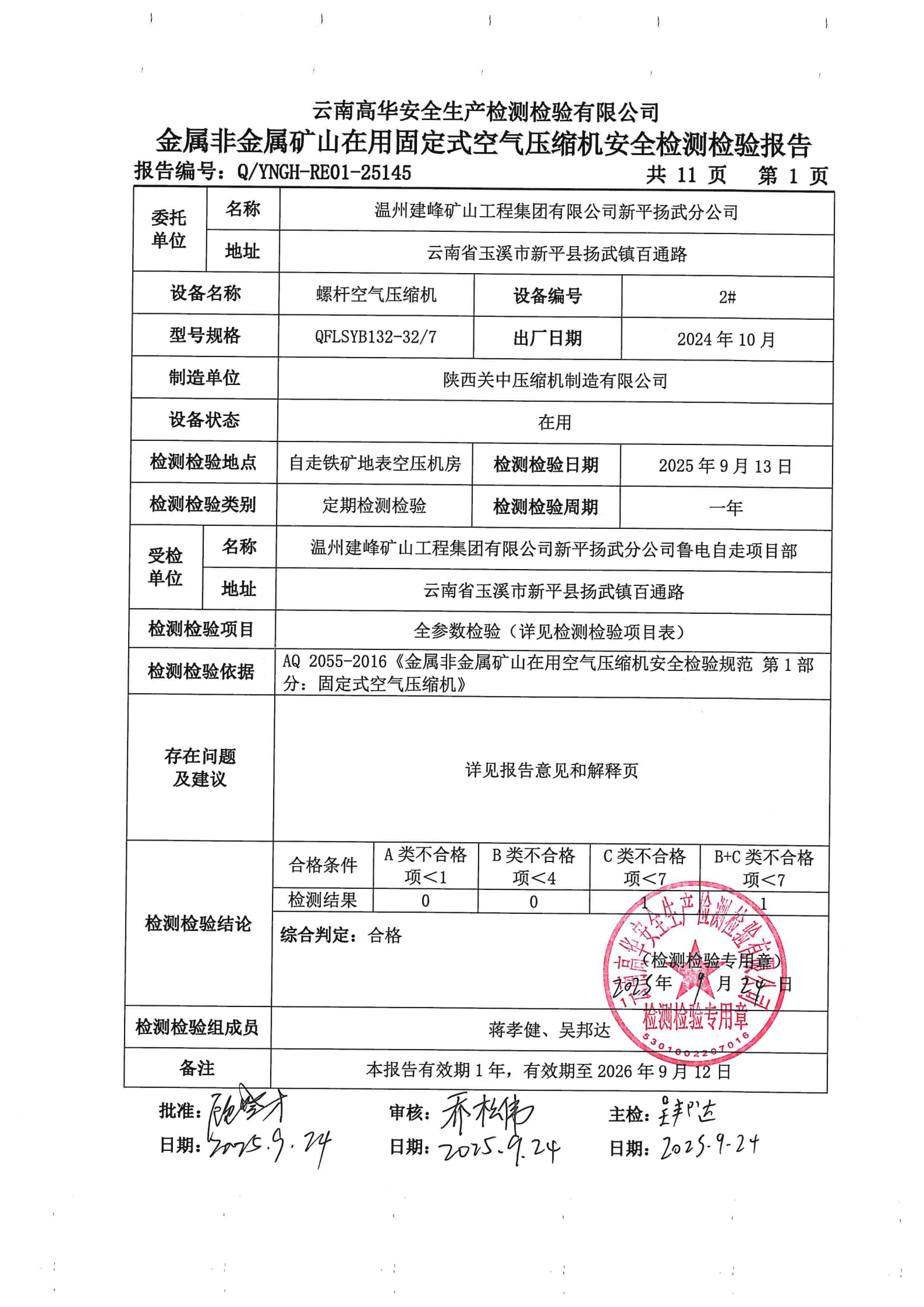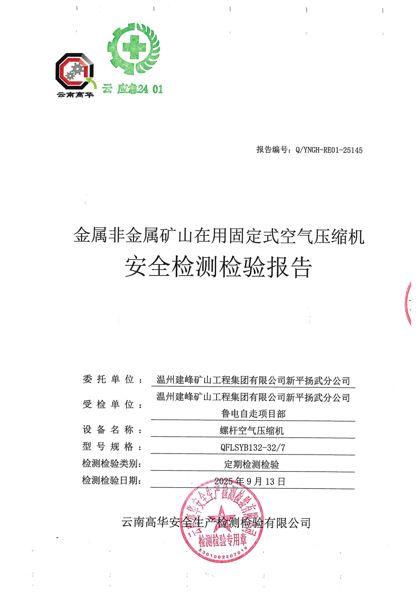 金属非金属矿山在用固定式空气压缩机安全检测检验报告