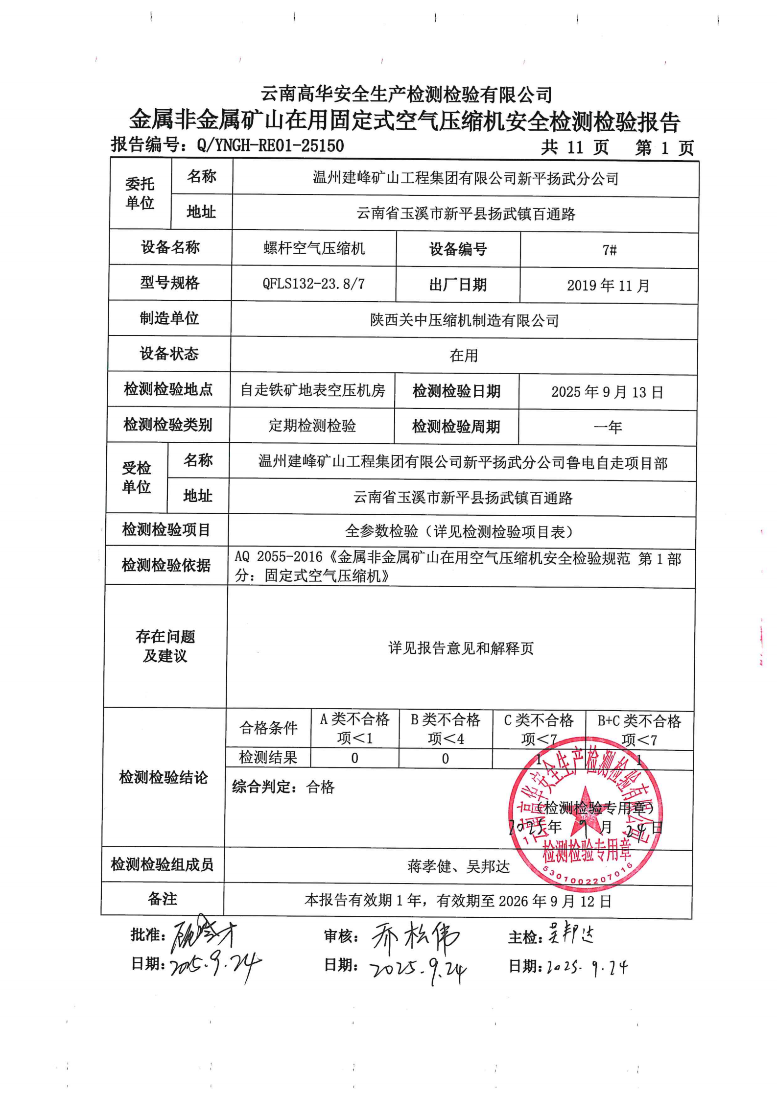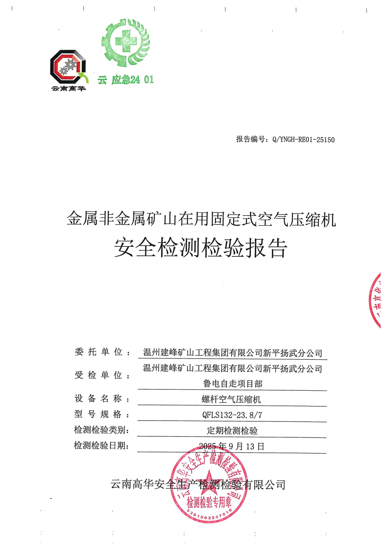 金属非金属矿山在用固定式空气压缩机安全检测检验报告