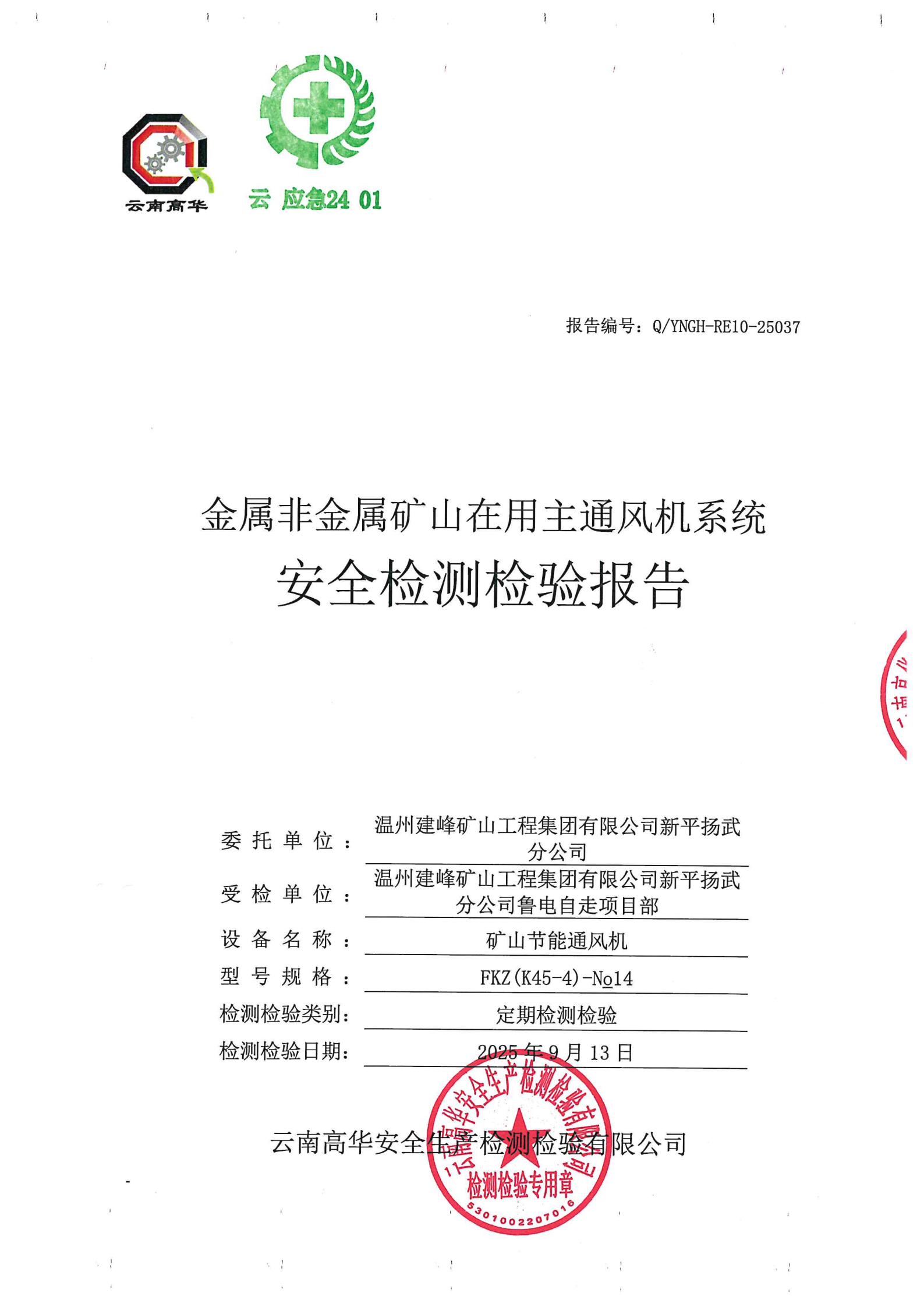 金属非金属矿山在用主通风机系统安全检测检验报告