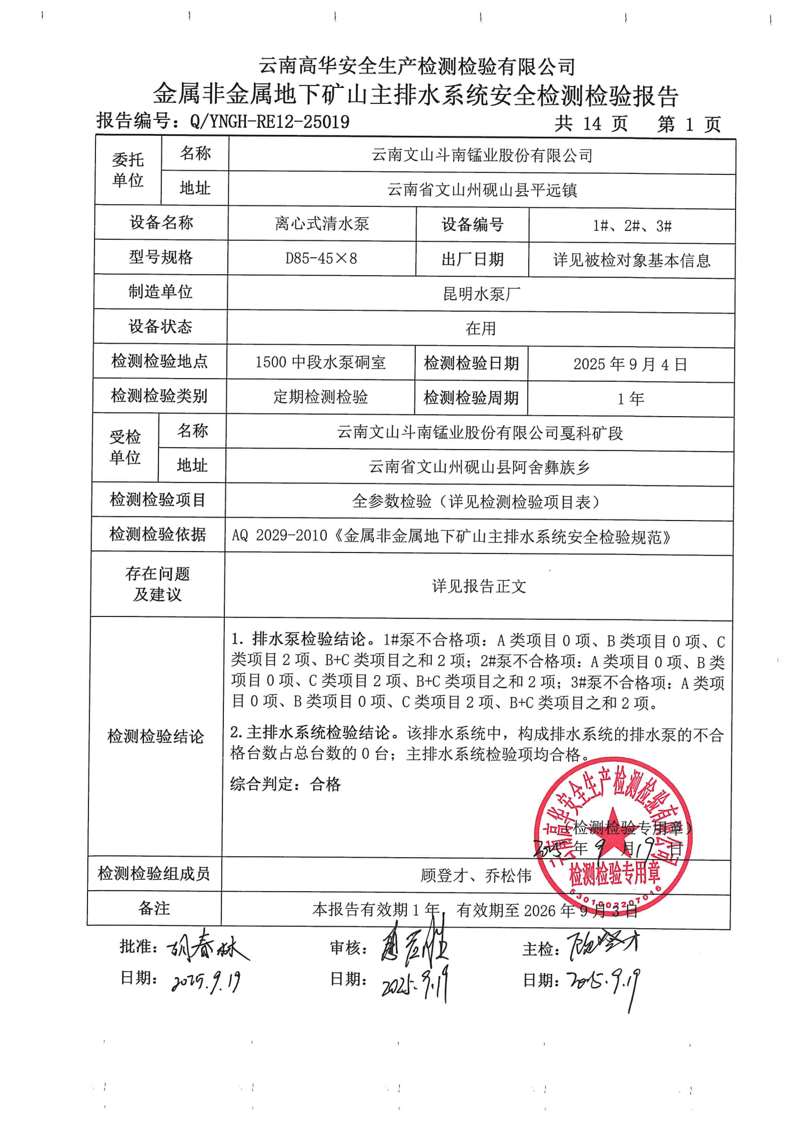 金属非金属矿山在用固定式空气压缩机安全检测检验报告