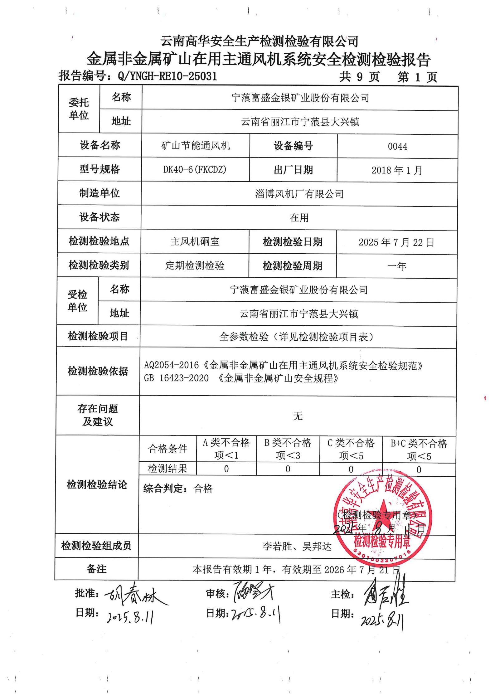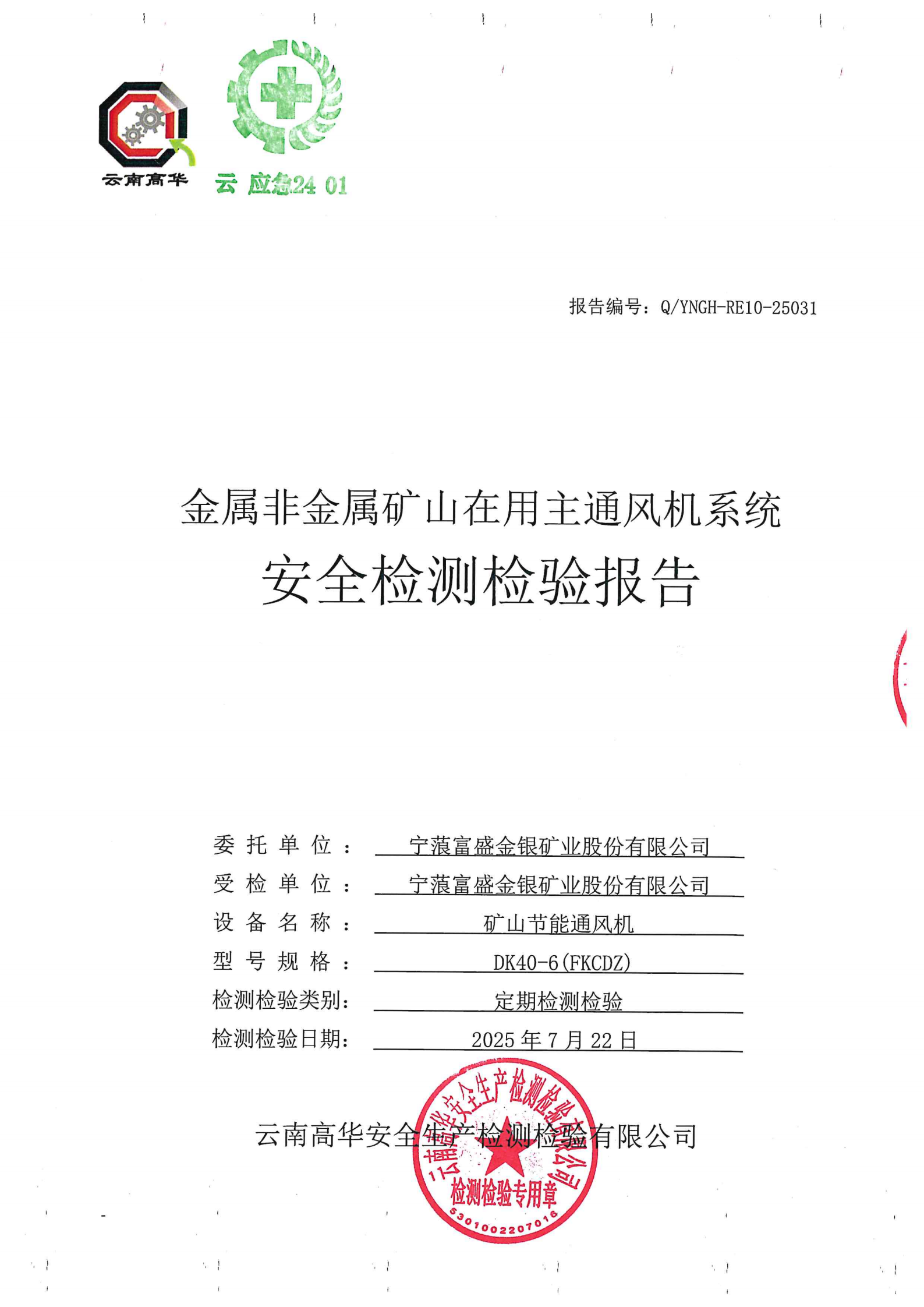 金属非金属矿山在用主通风机系统安全检测检验报告