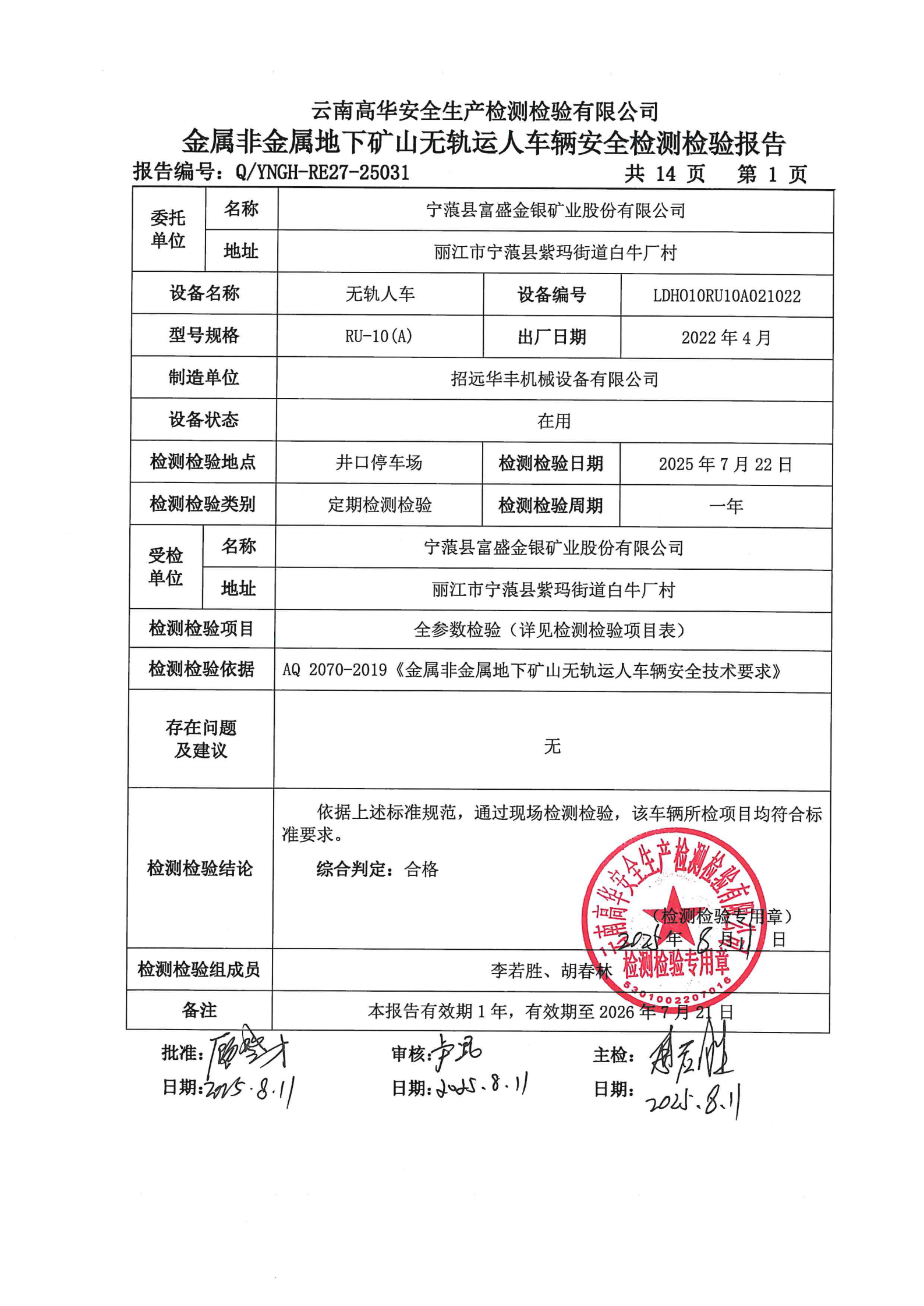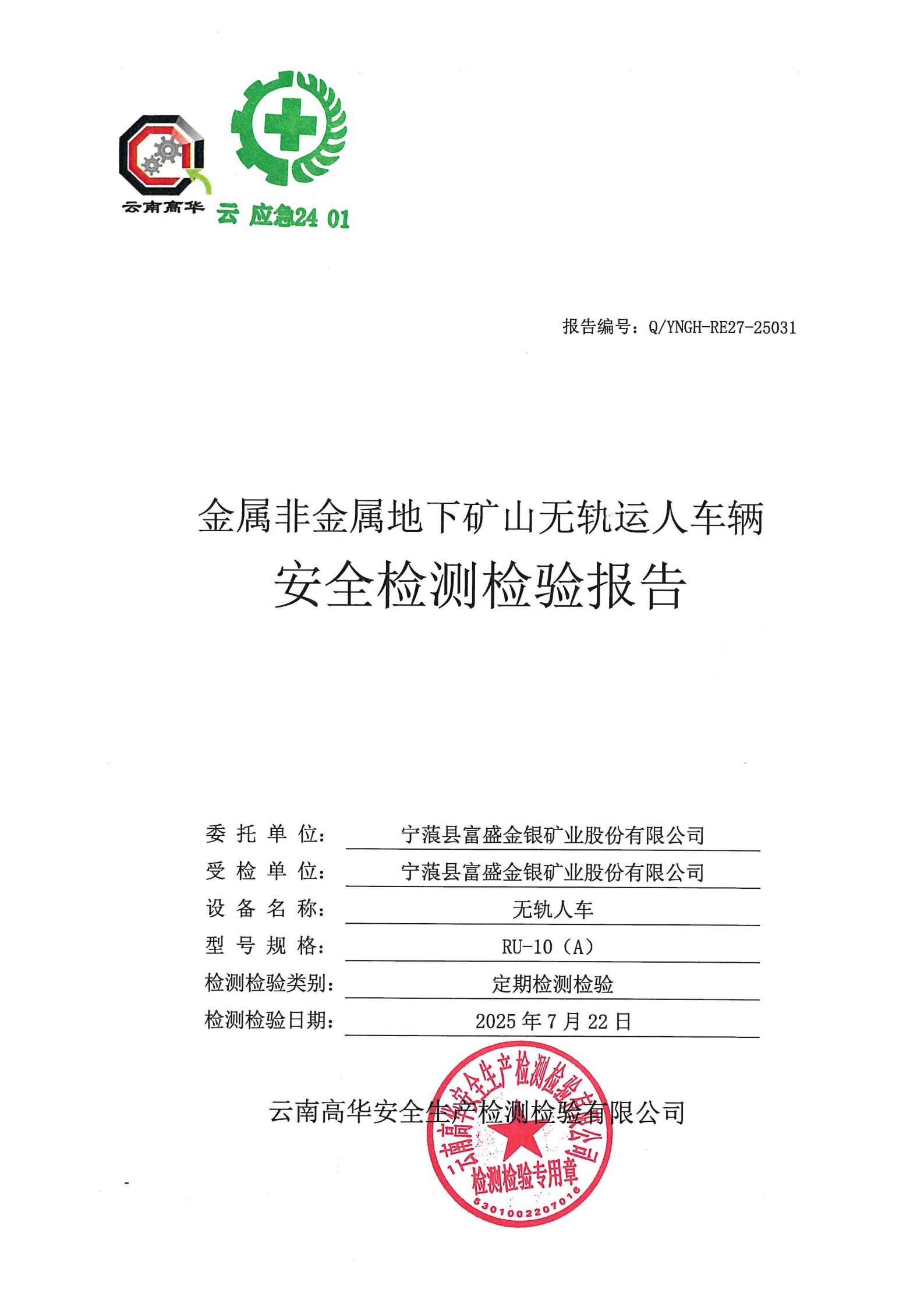 金属非金属地下矿山无轨运人车辆安全检测检验报告