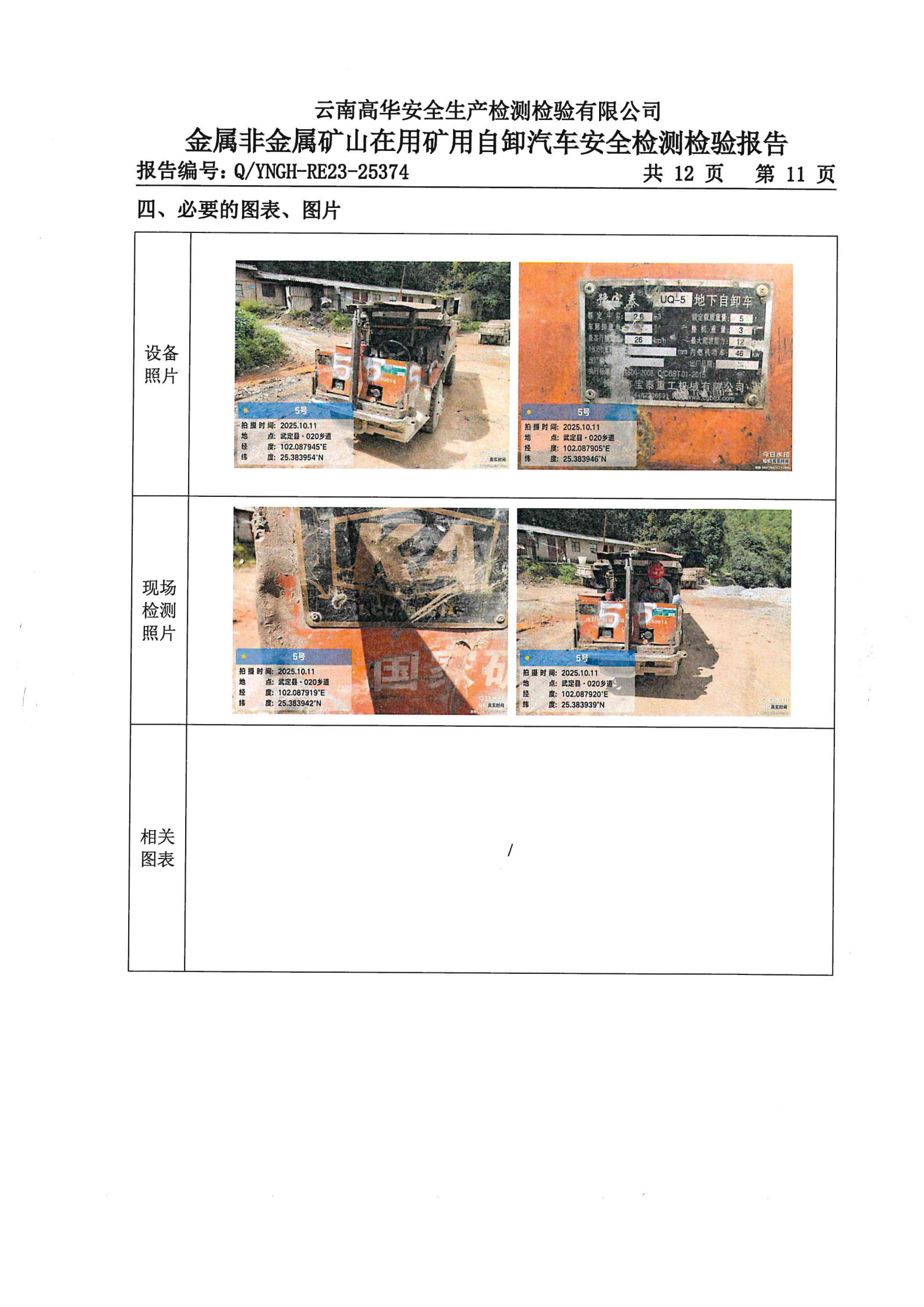 金属非金属矿山在用矿用自卸汽车安全检测检验报告