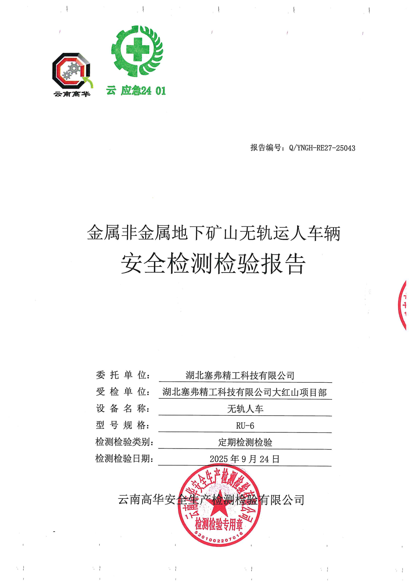 金属非金属地下矿山无轨运人车辆安全检测检验报告