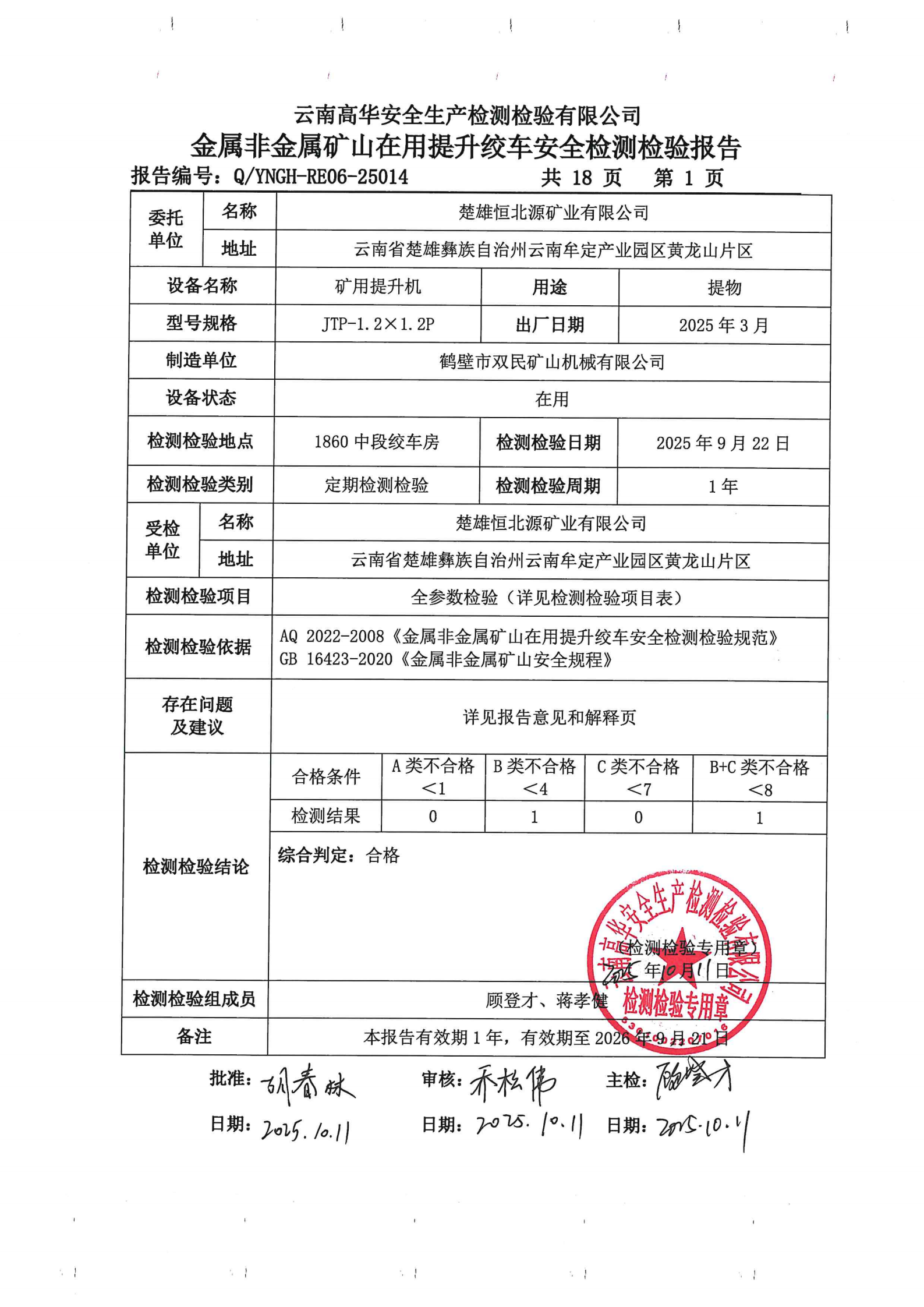 金属非金属在用矿用自卸汽车安全检测检验报告