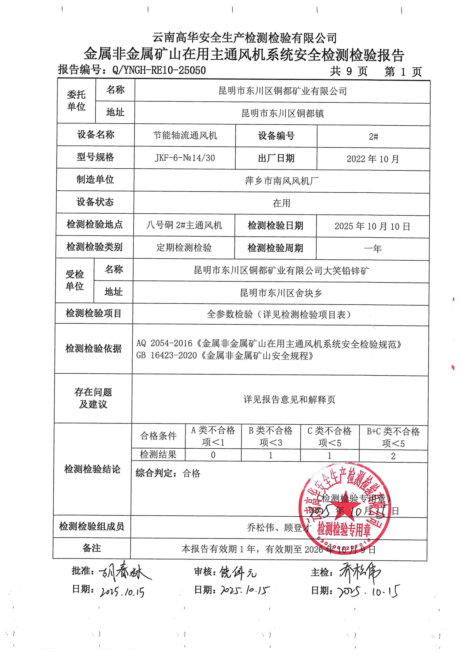 金属非金属矿山在用主通风机系统安全检测检验报告