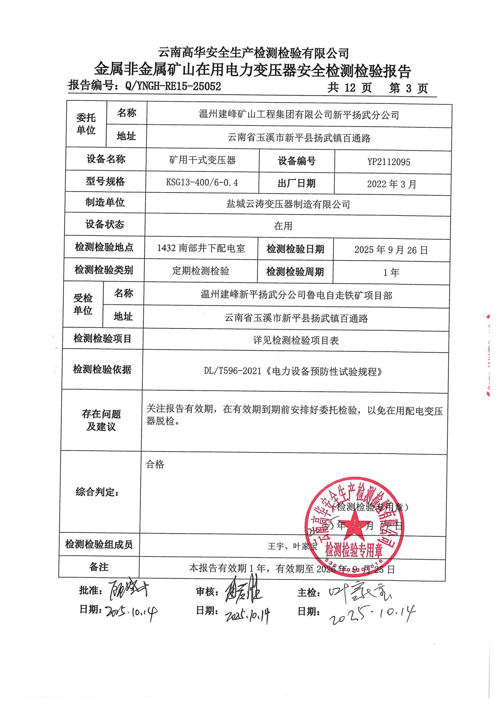金属非金属在用矿用自卸汽车安全检测检验报告