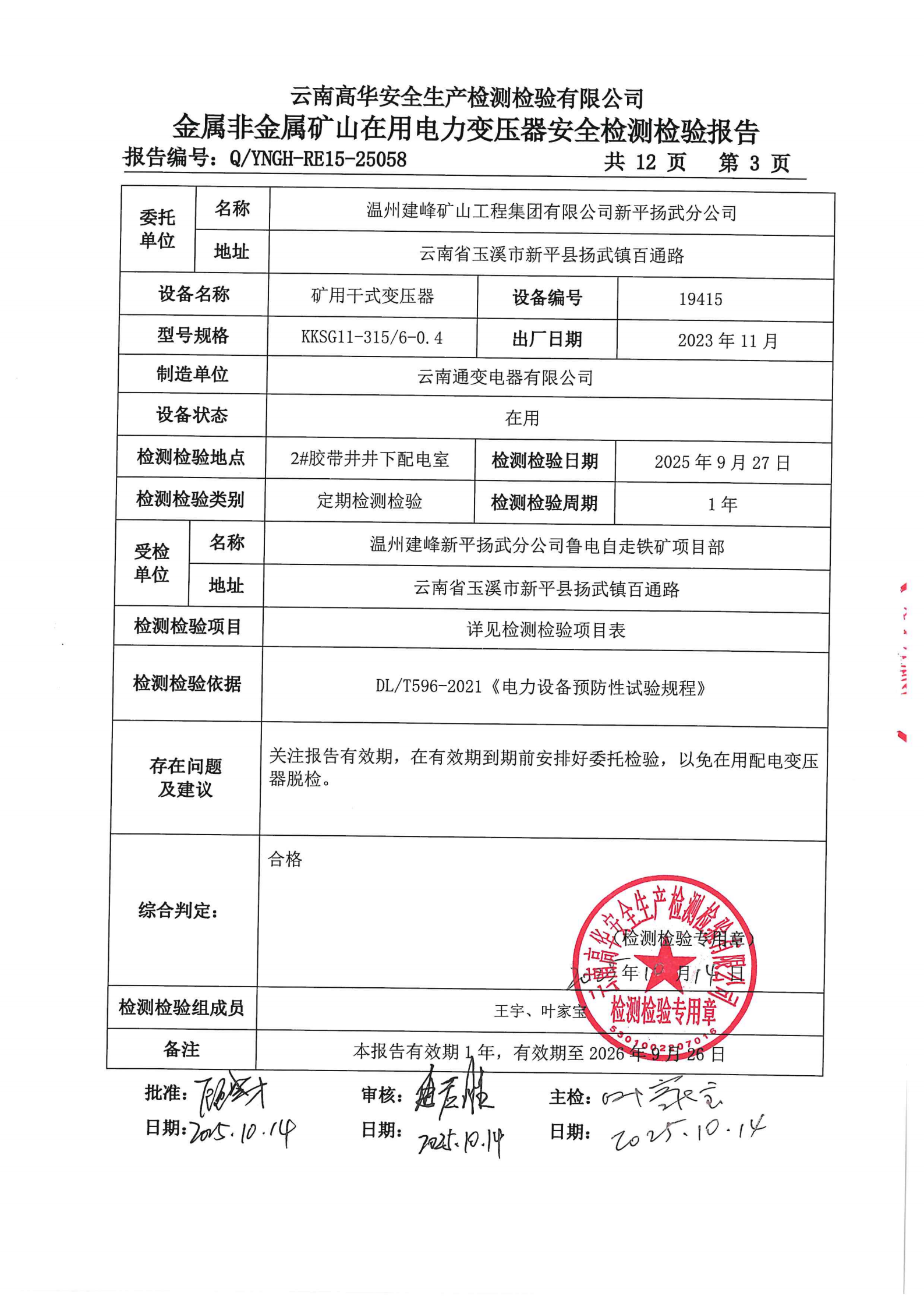 金属非金属矿山在用矿用自卸汽车安全检测检验报告