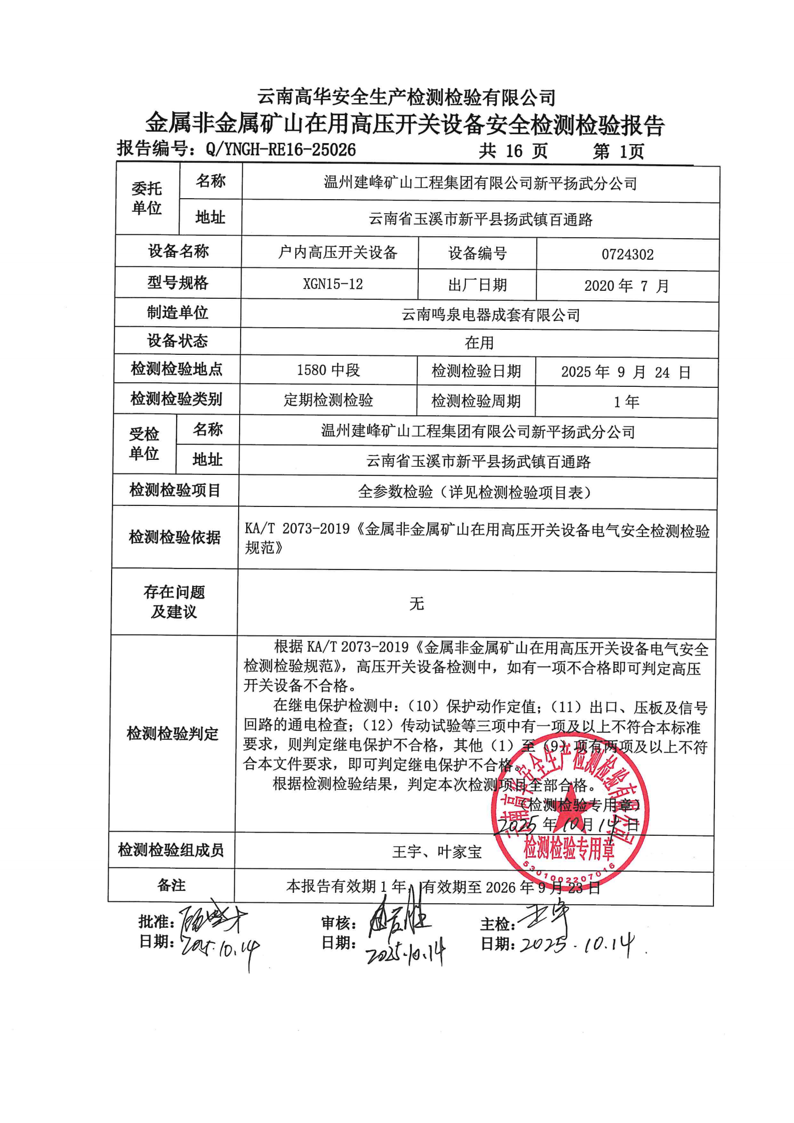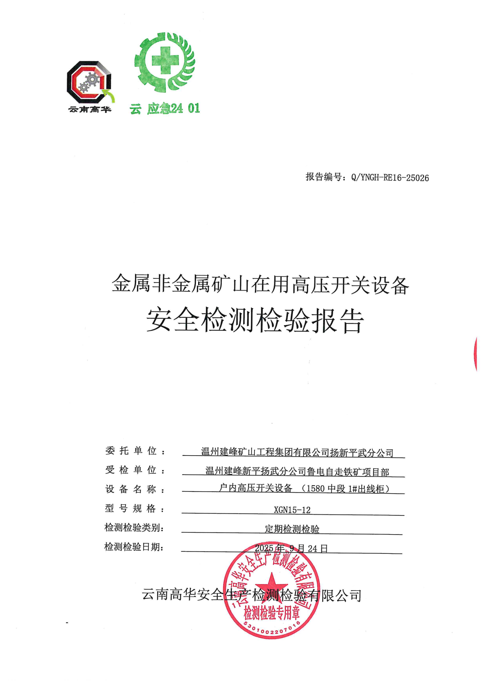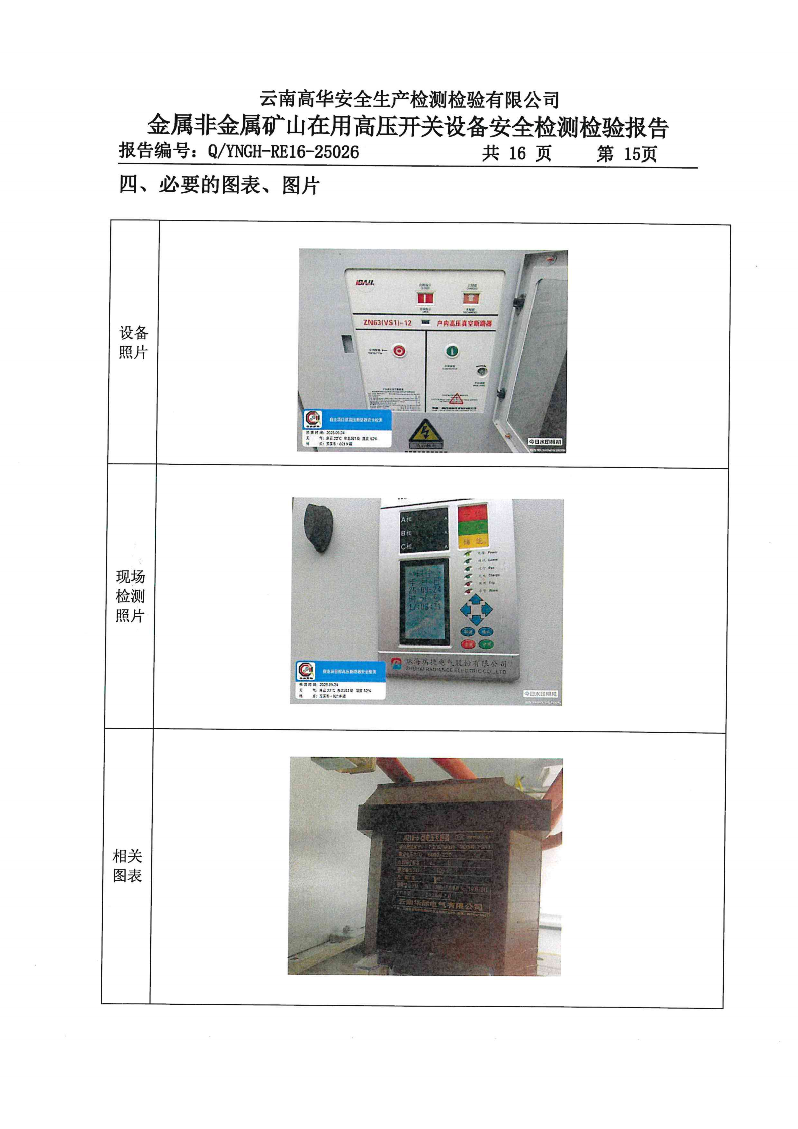 金属非金属矿山在用高压开关设备安全检测检验报告