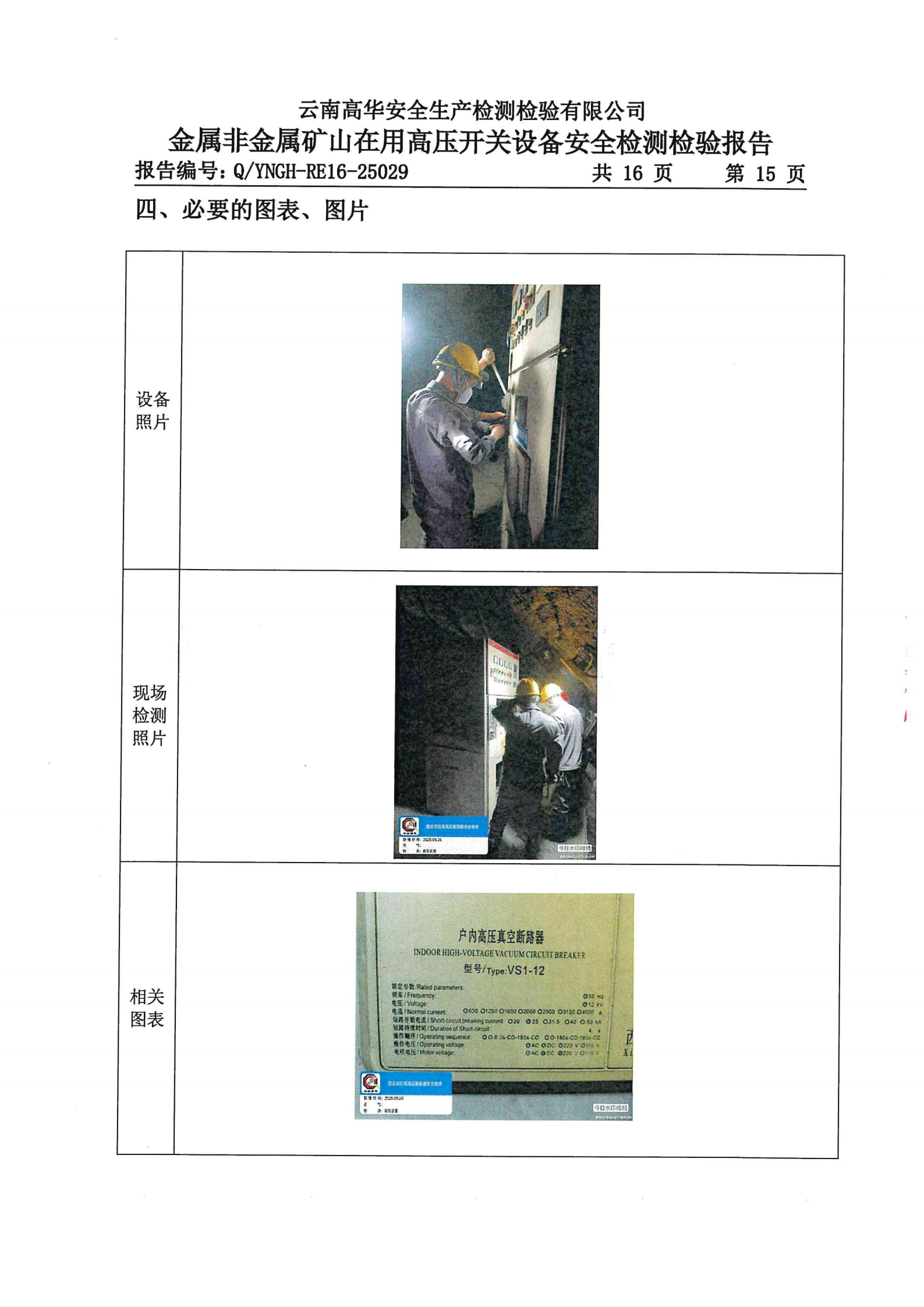 金属非金属矿山在用高压开关设备安全检测检验报告