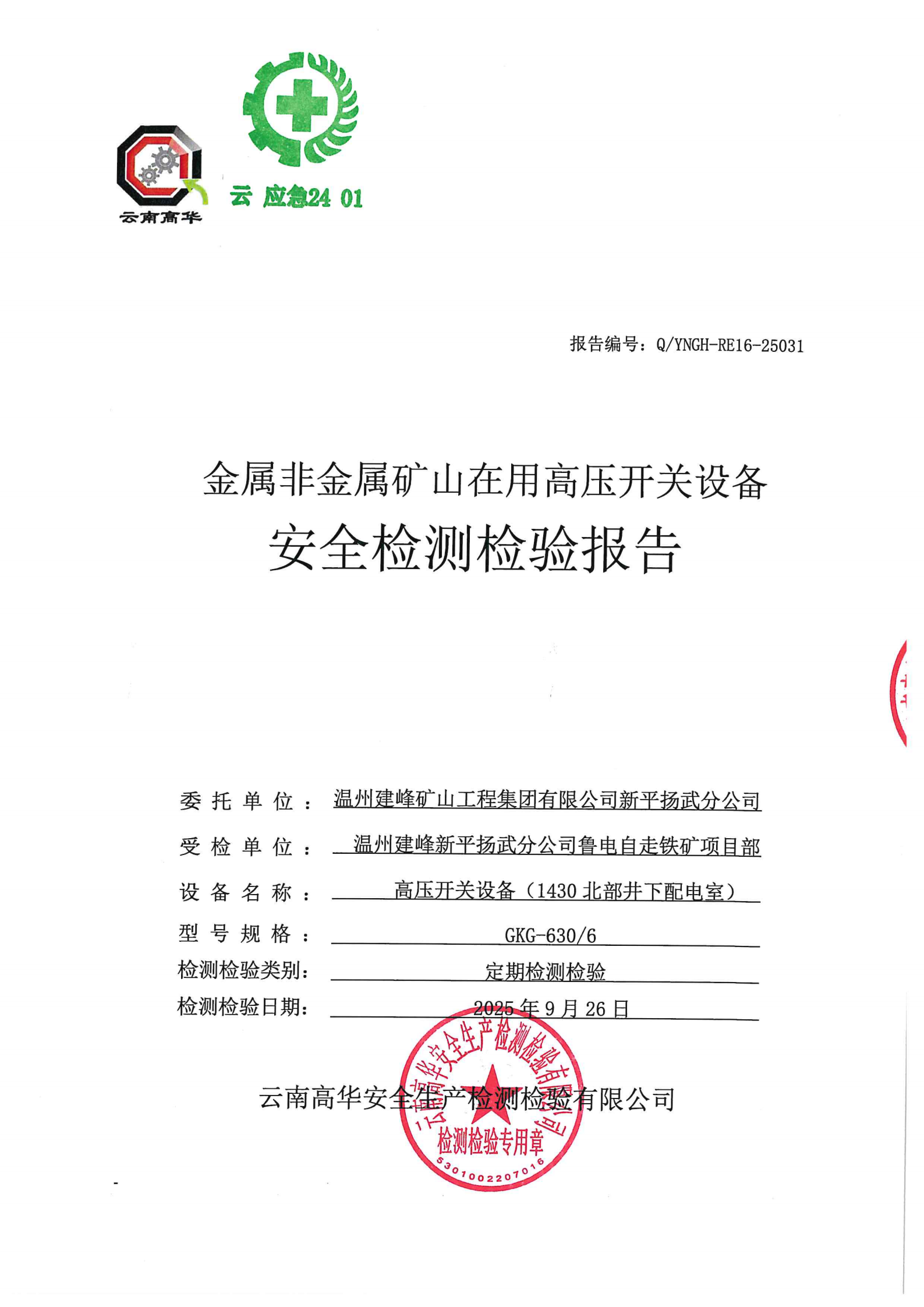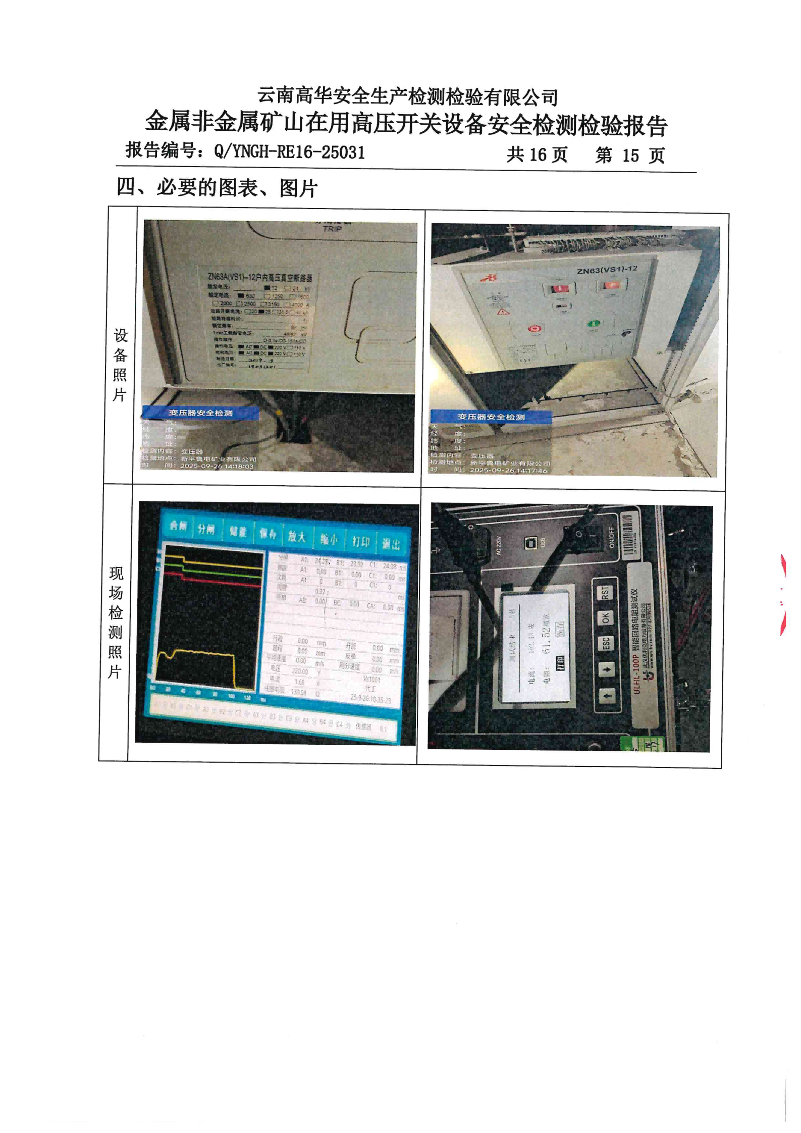 金属非金属矿山在用高压开关设备安全检测检验报告
