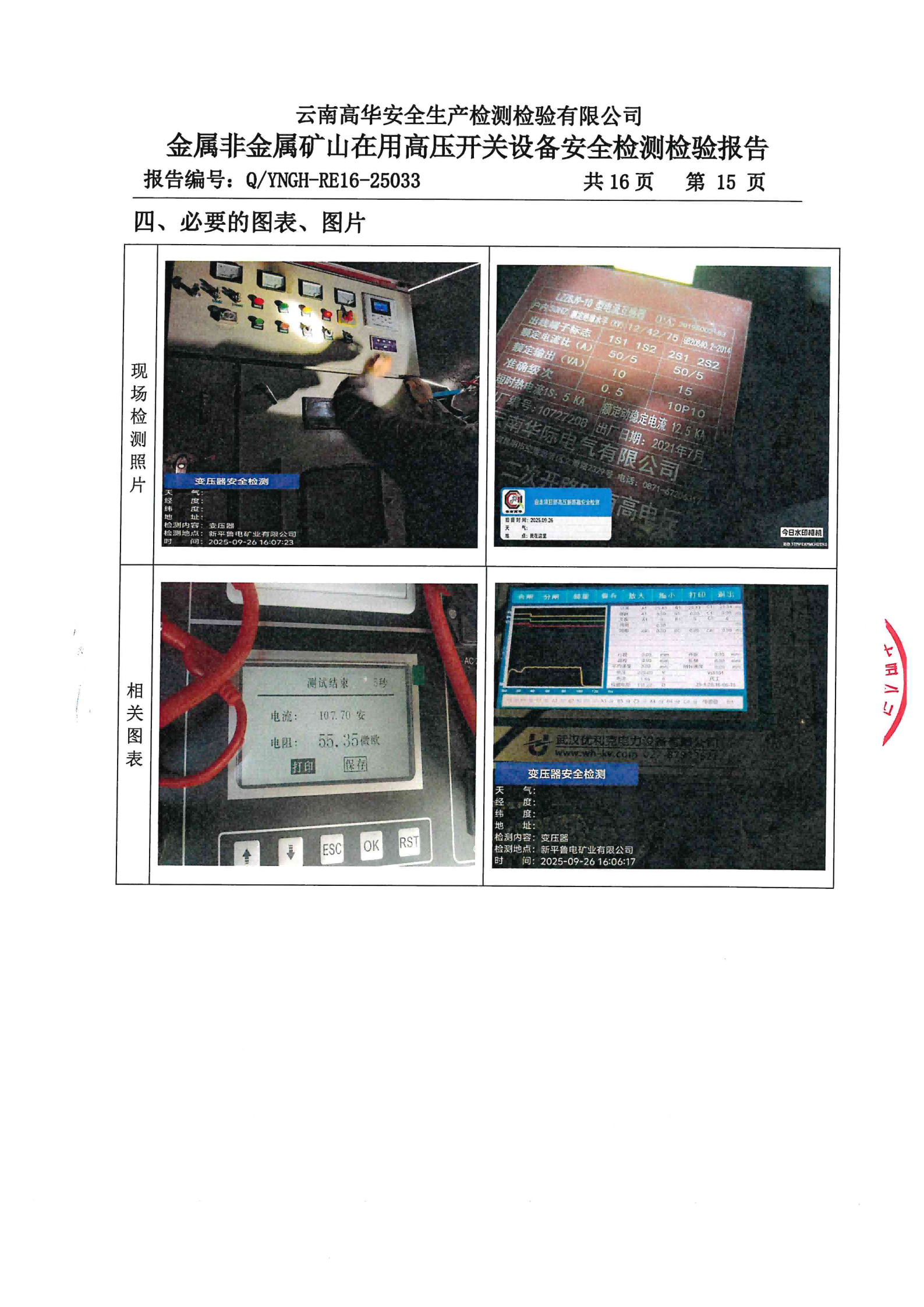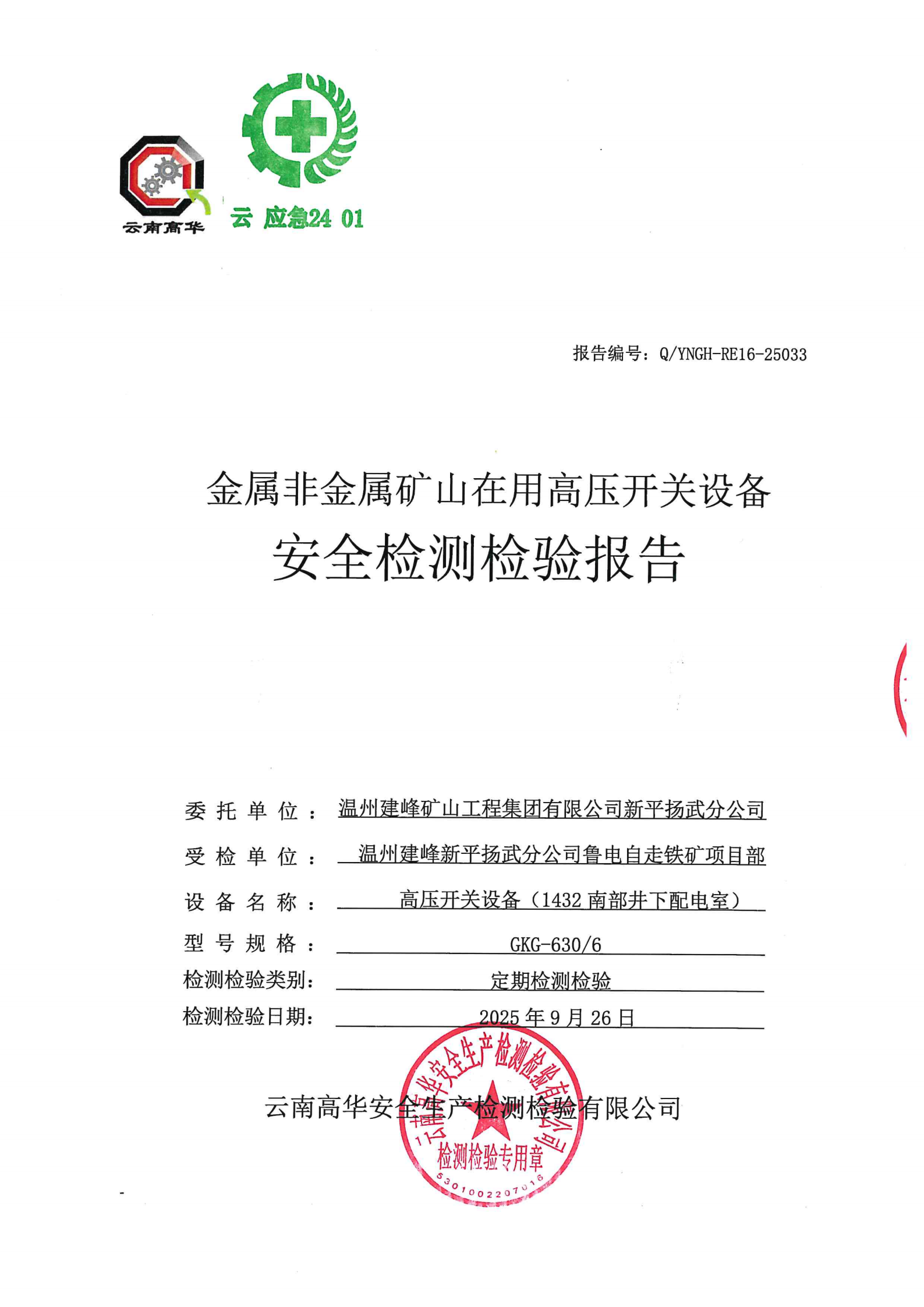 金属非金属矿山在用高压开关设备安全检测检验报告