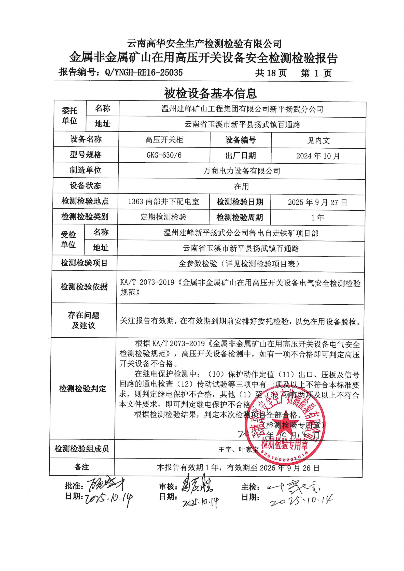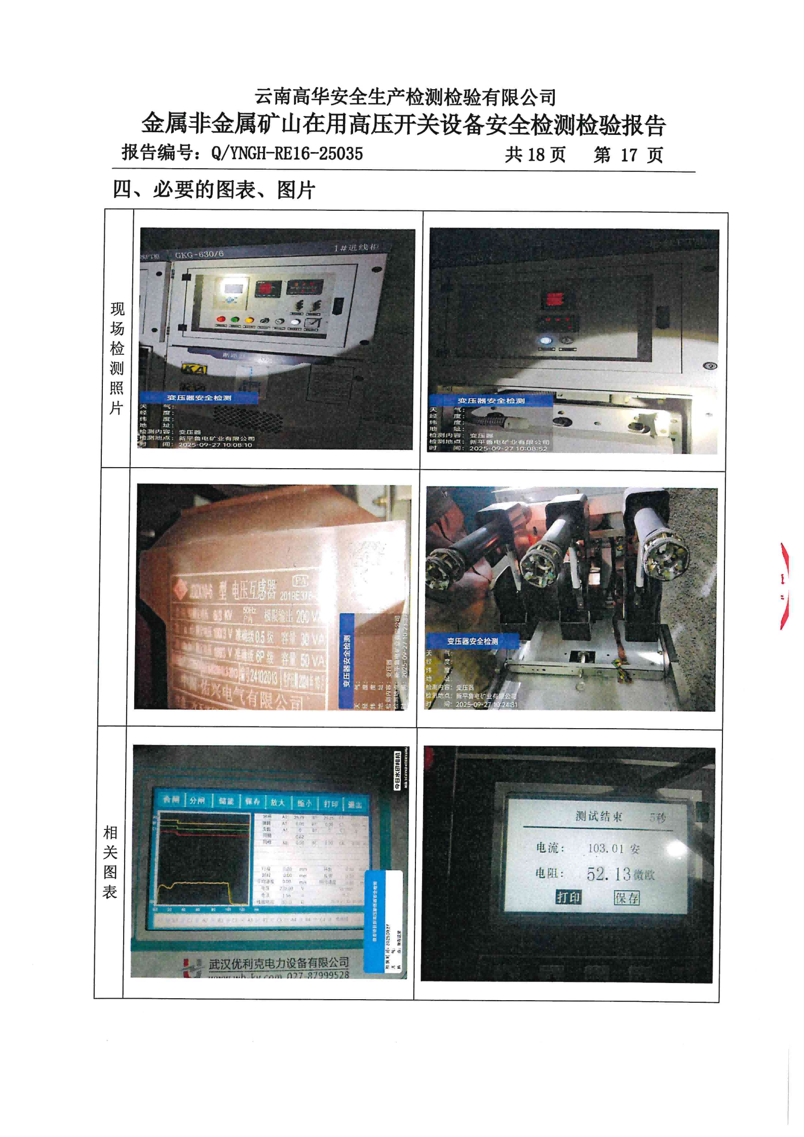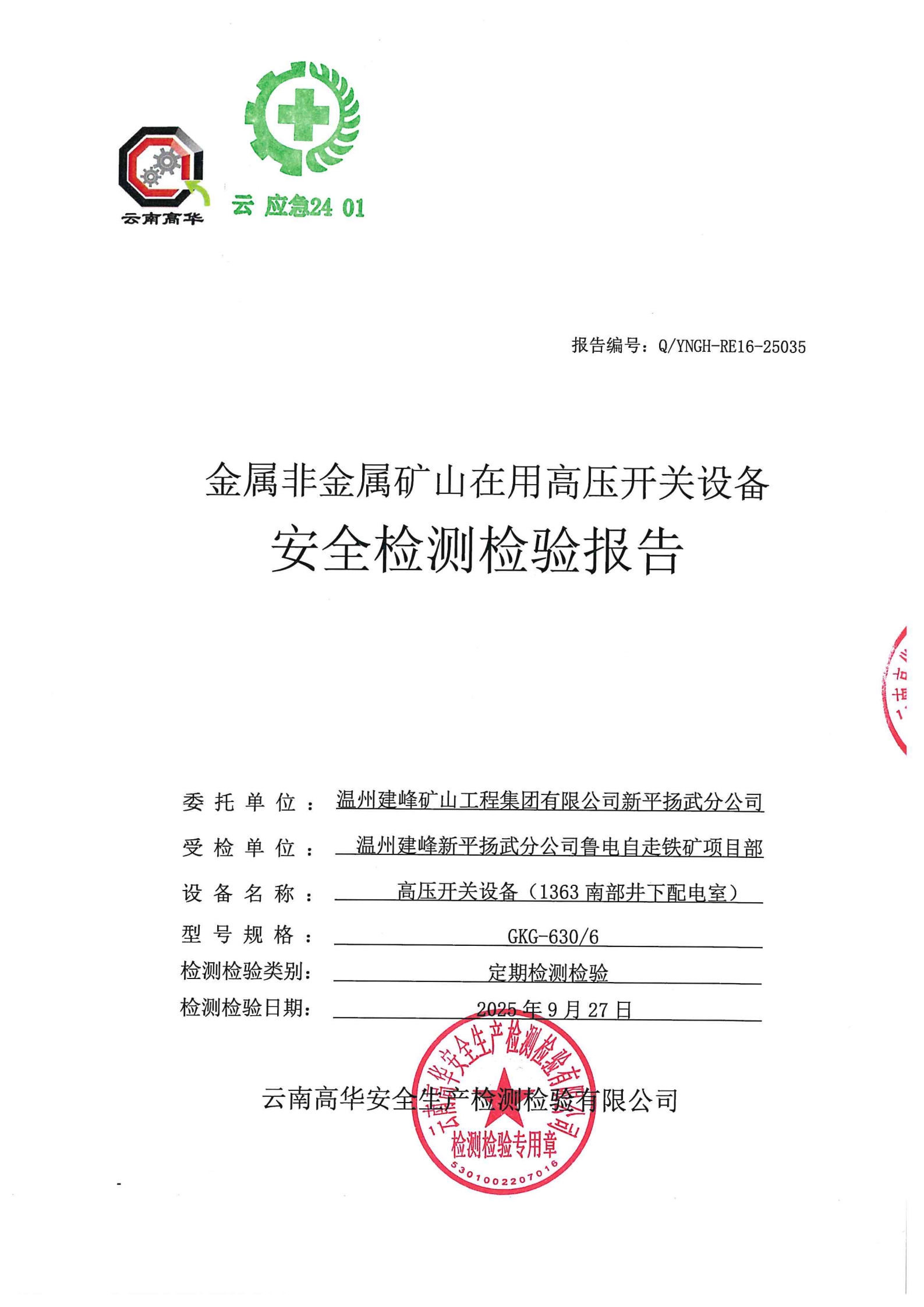 金属非金属矿山在用高压开关设备安全检测检验报告