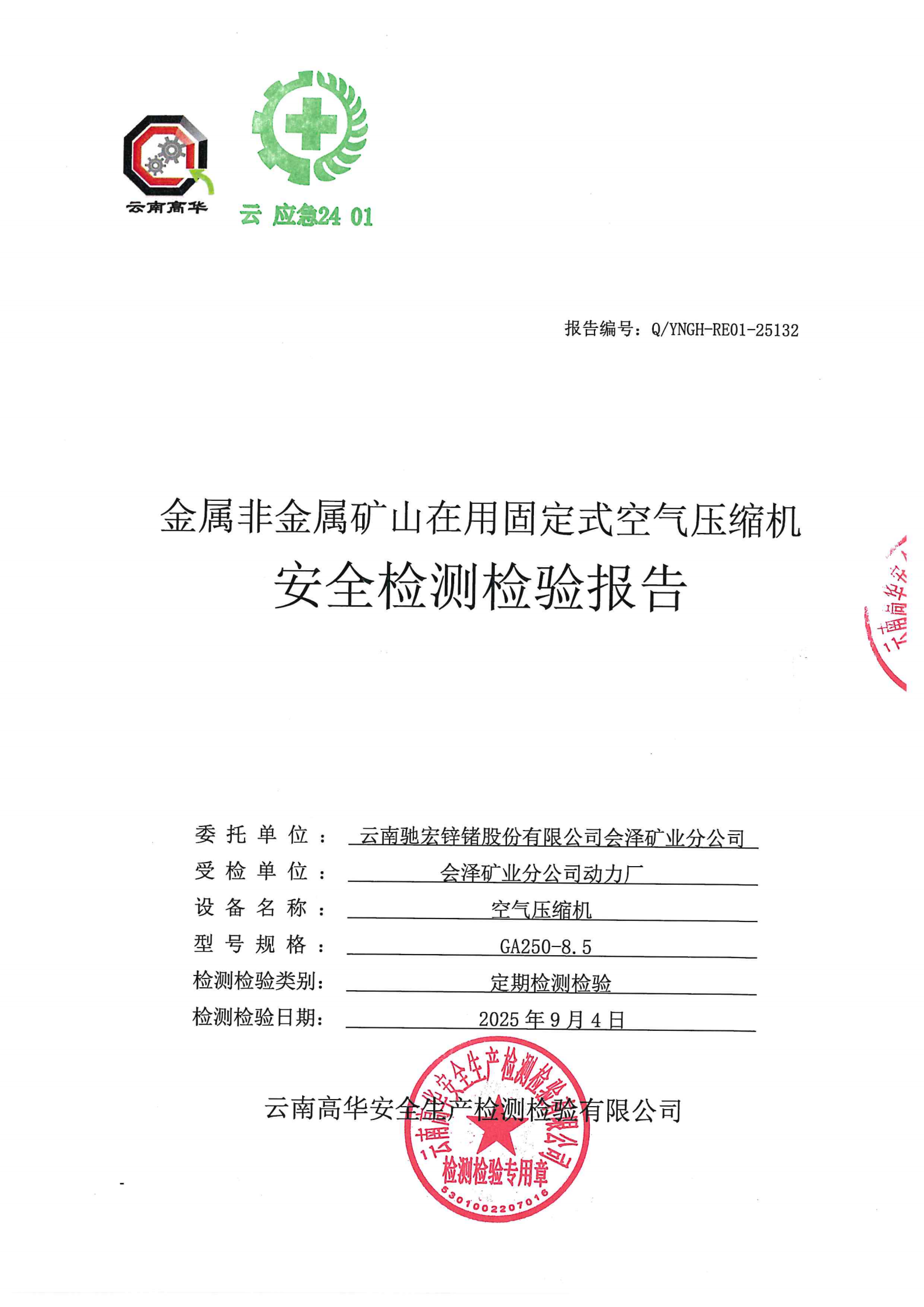 金属非金属矿山在用固定式空气压缩机安全检测检验报告