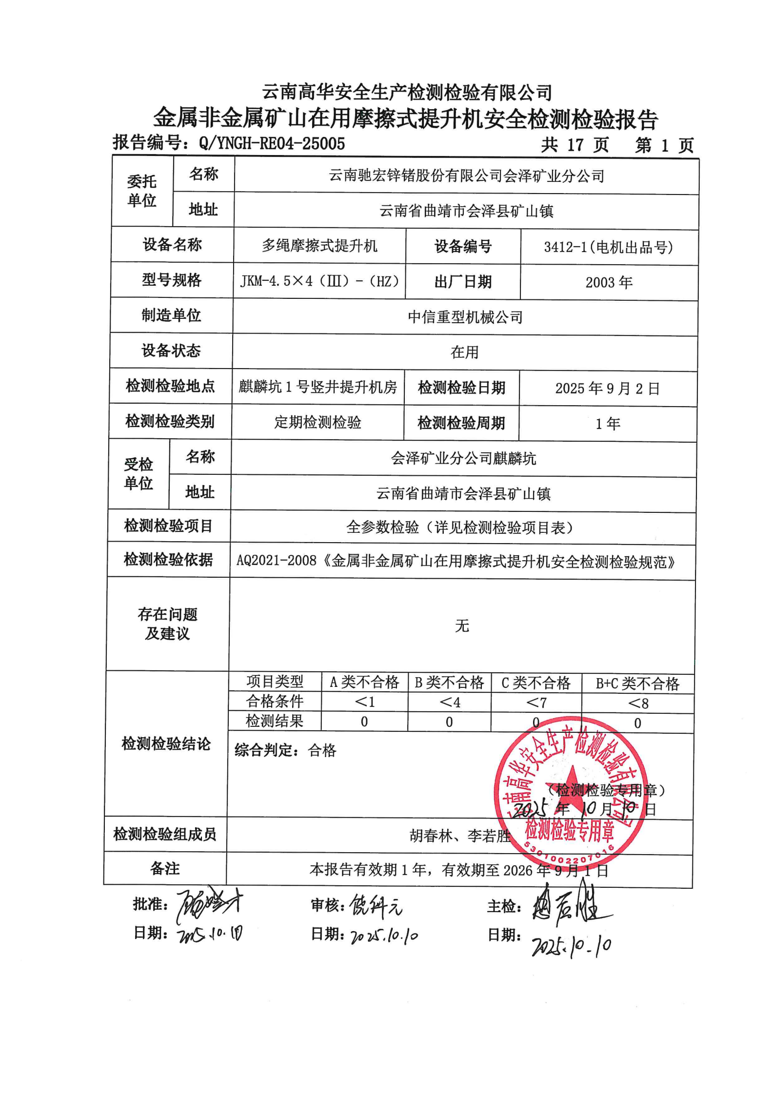 金属非金属矿山在用摩擦式提升机安全检测检验报告