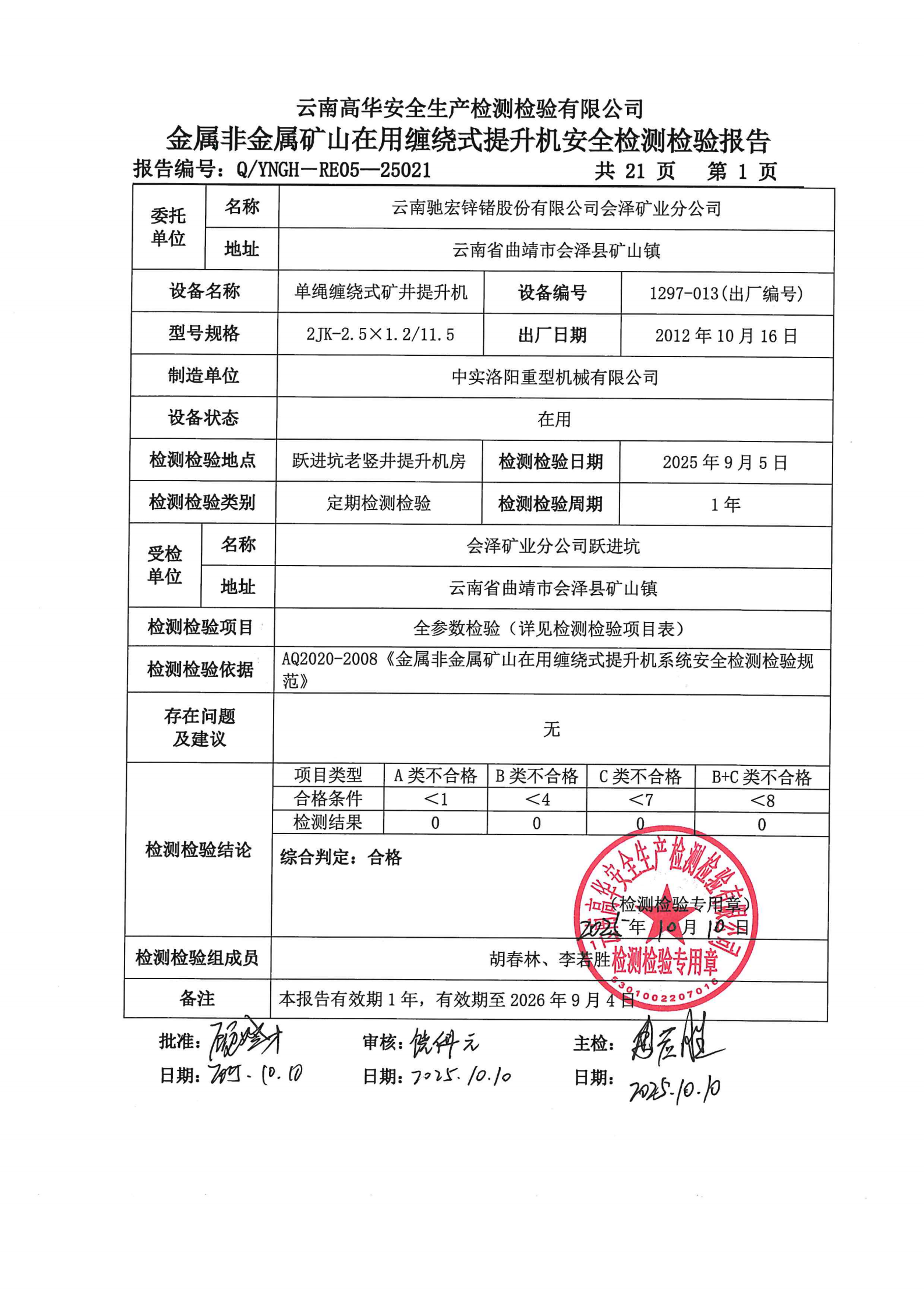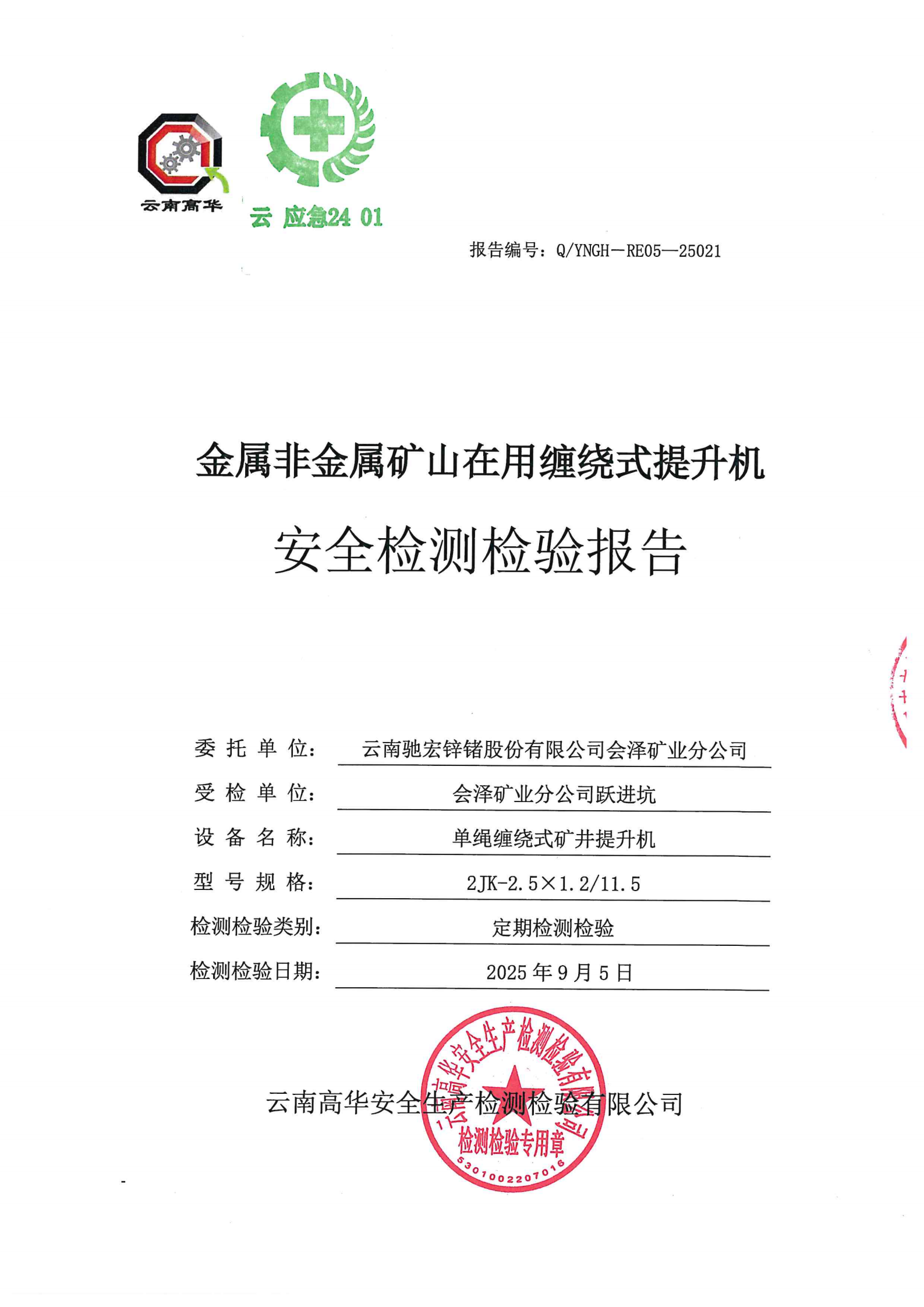 金属非金属矿山在用缠绕式提升机安全检测检验报告