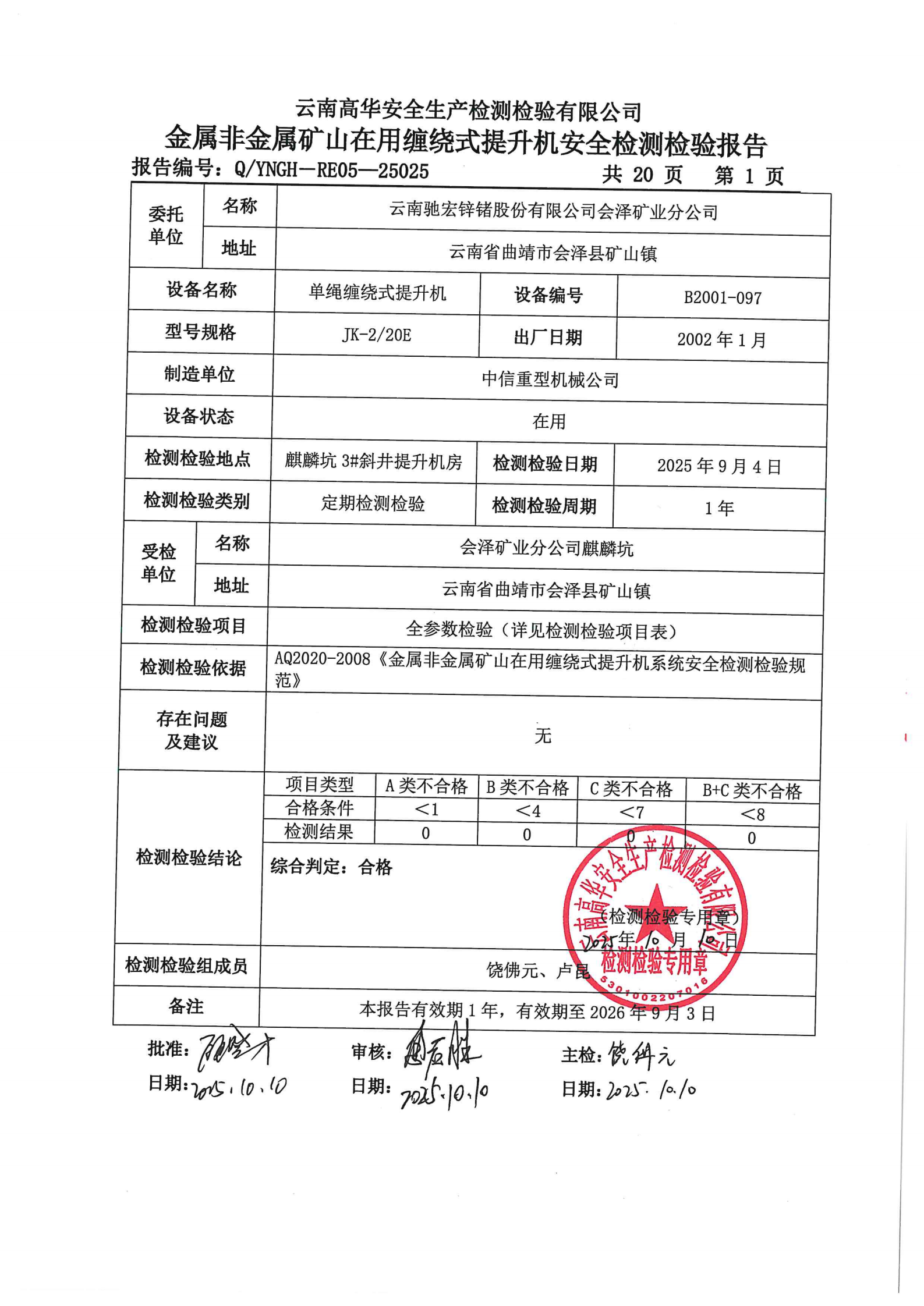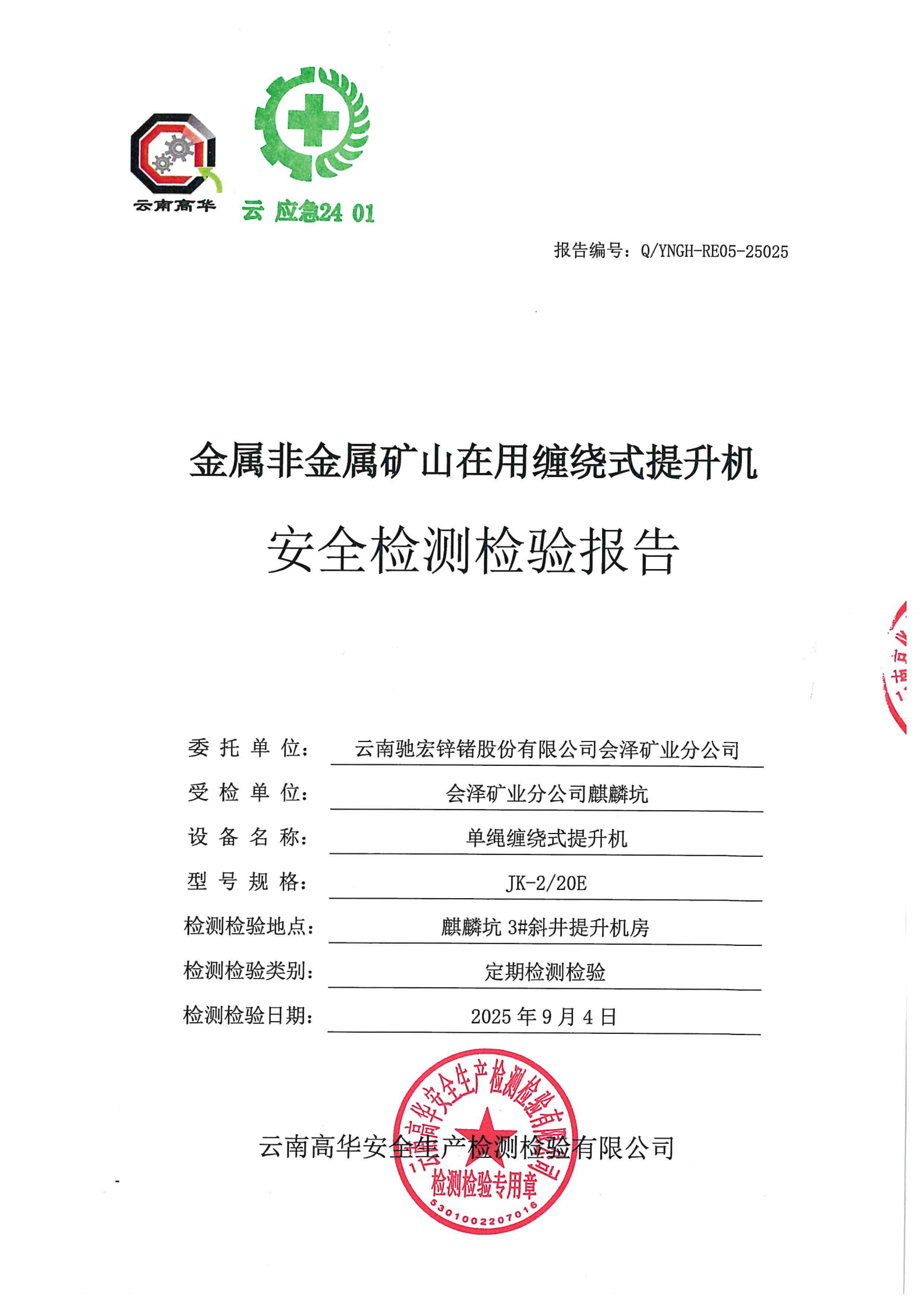 金属非金属矿山在用缠绕式提升机安全检测检验报告