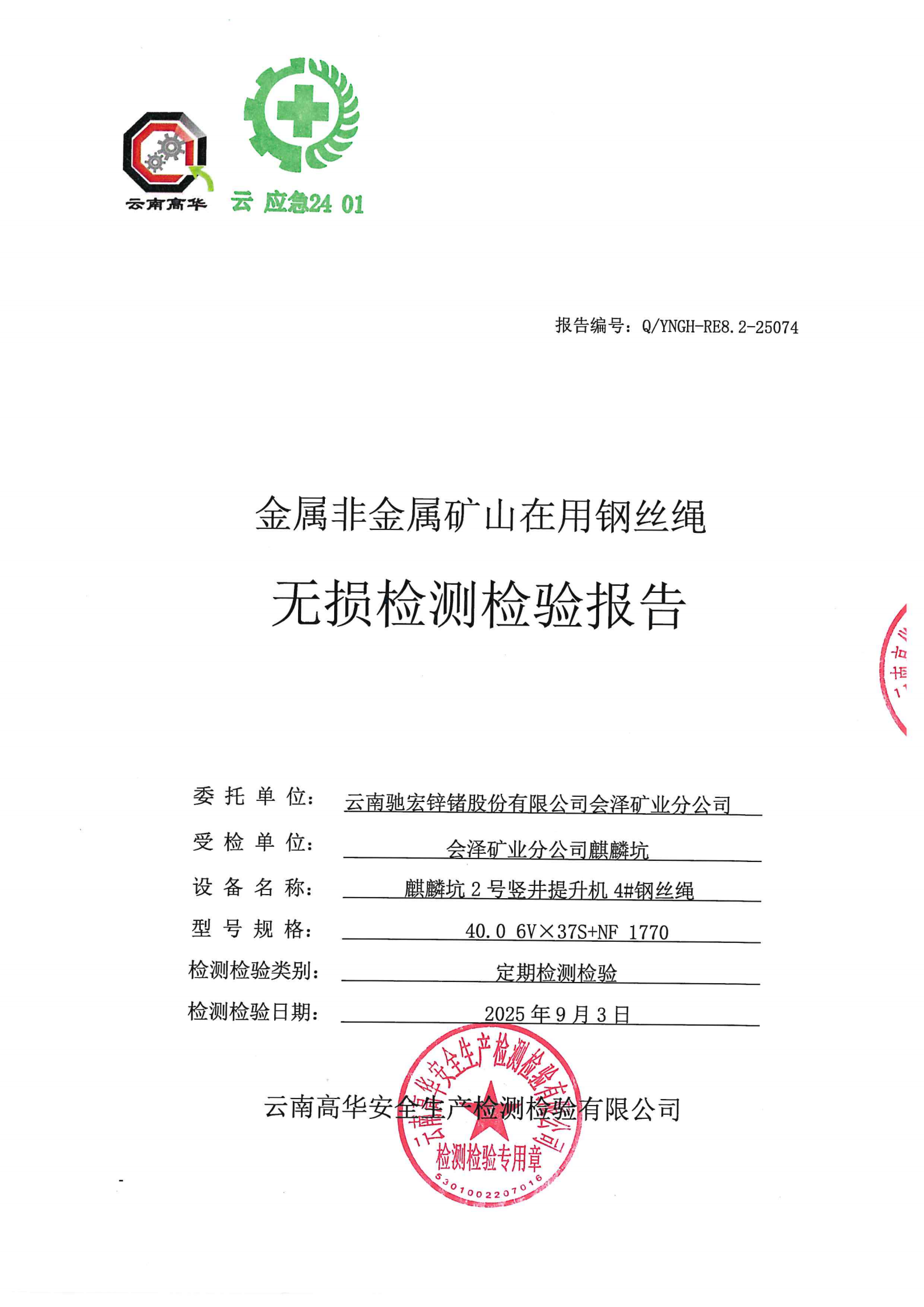 金属非金属矿山在用钢丝绳无损检测检验报告