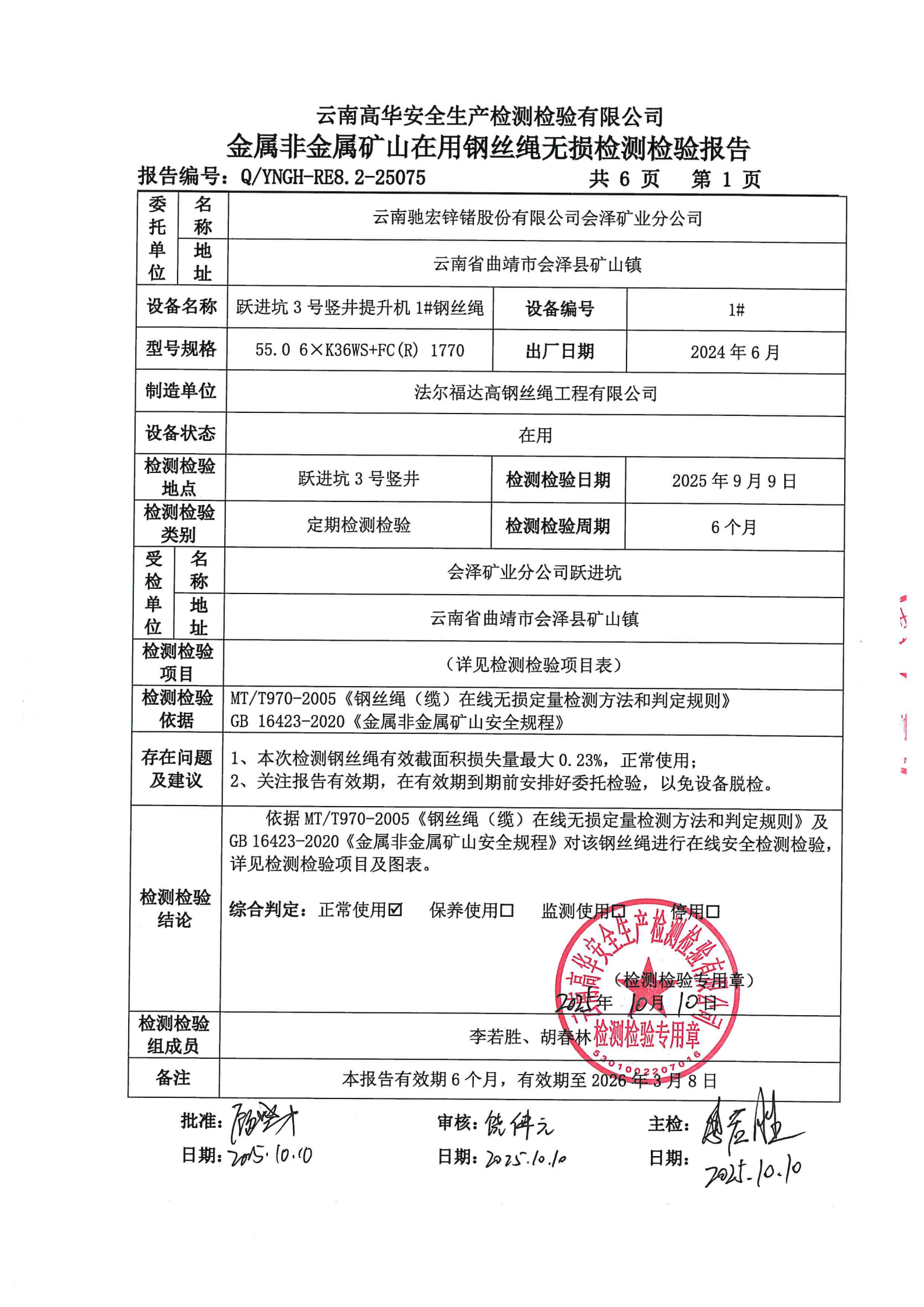 金属非金属矿山在用钢丝绳无损检测检验报告