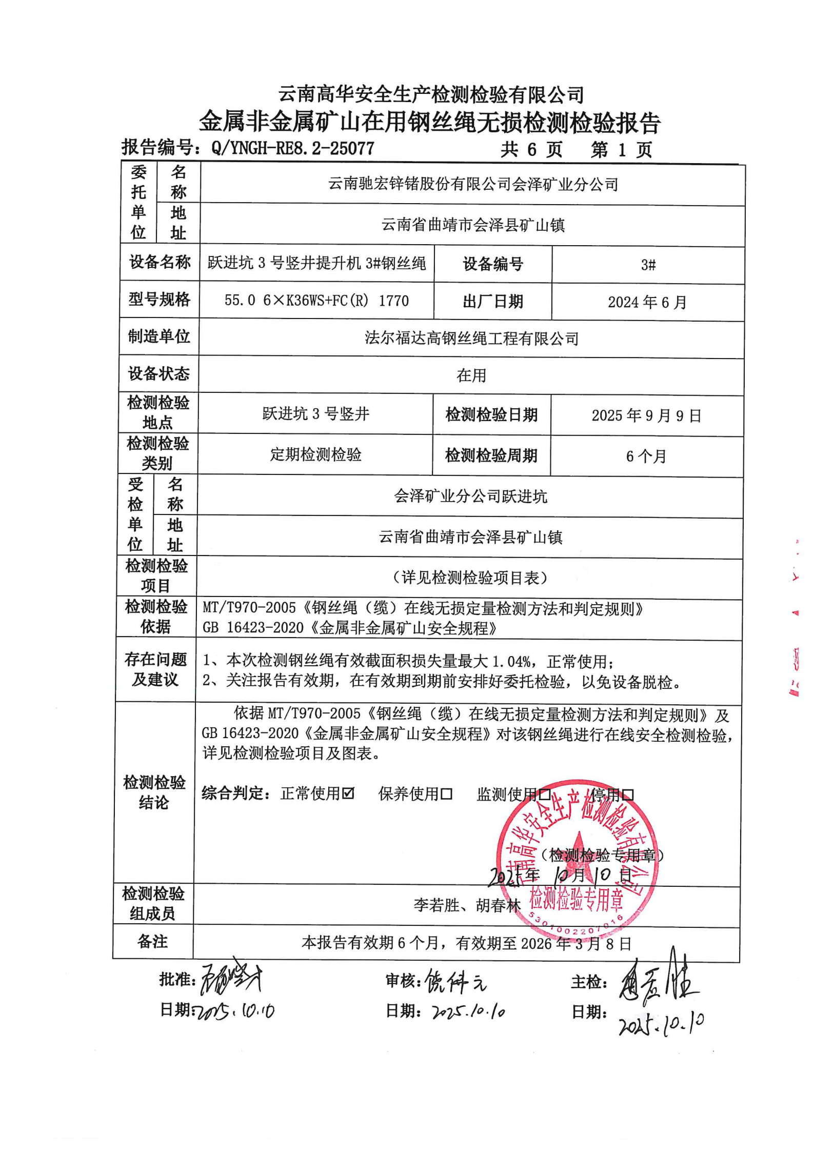 金属非金属矿山在用钢丝绳无损检测检验报告
