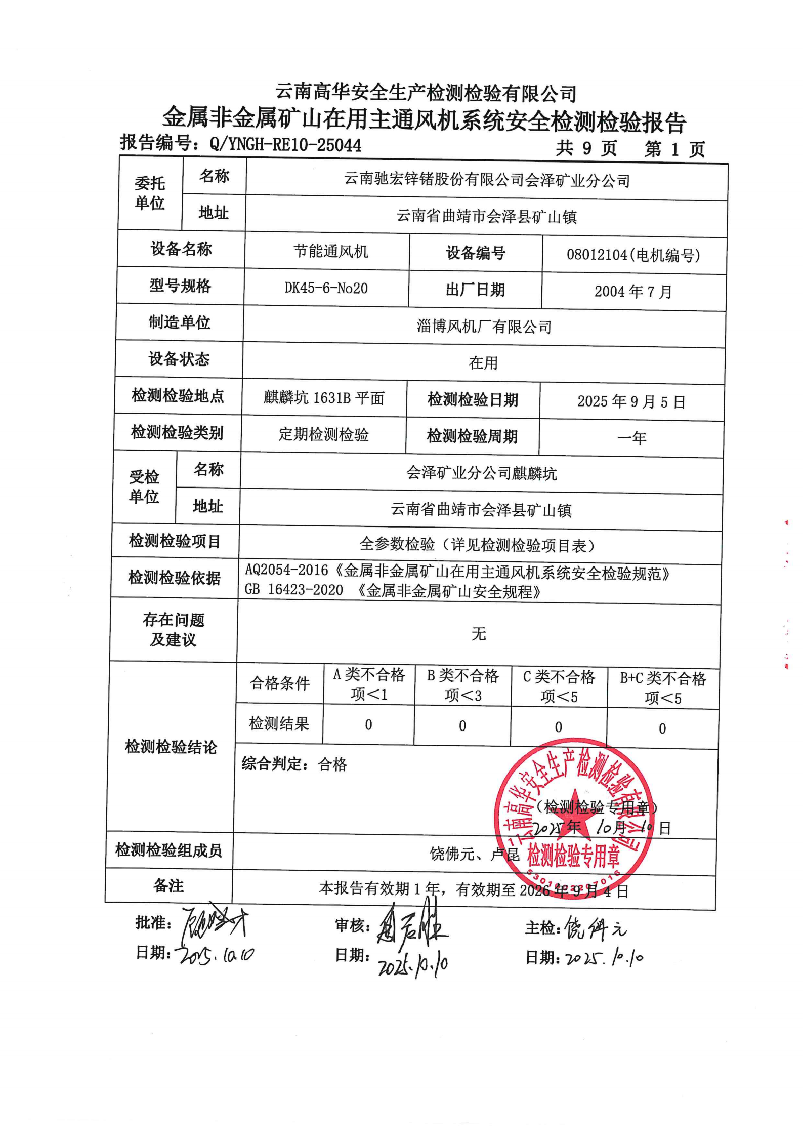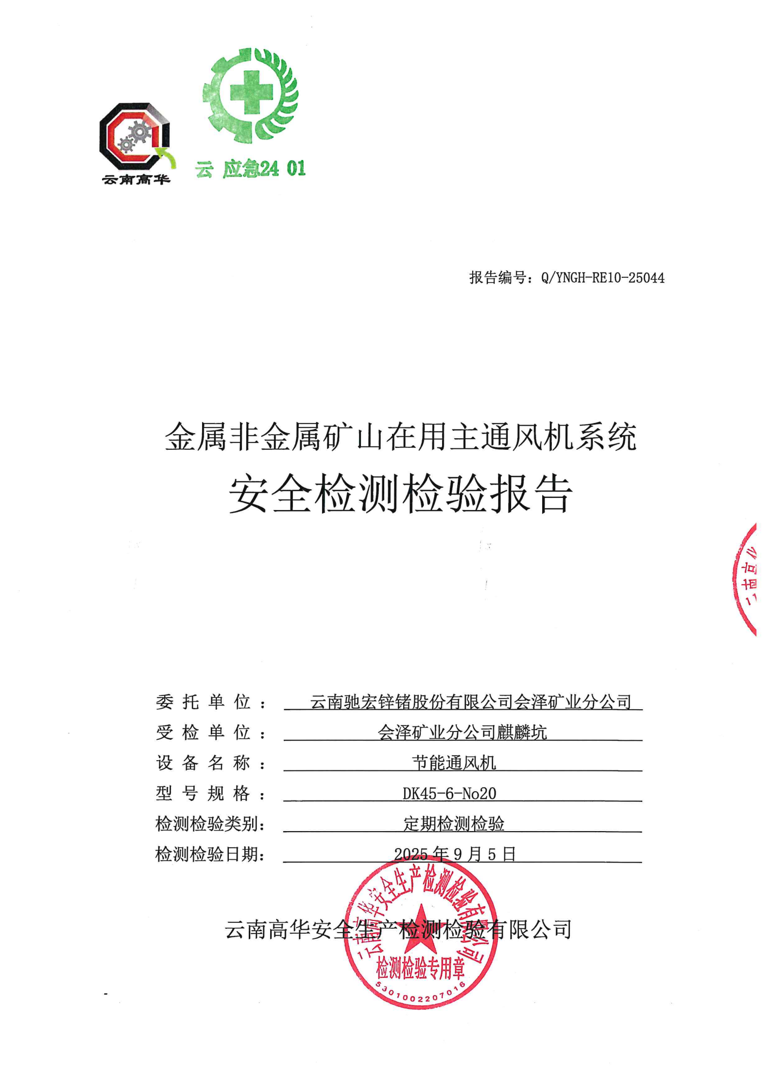 金属非金属矿山在用主通风机系统安全检测检验报告