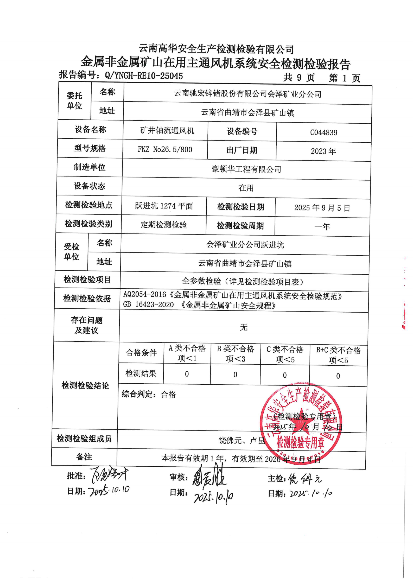 金属非金属矿山在用主通风机系统安全检测检验报告
