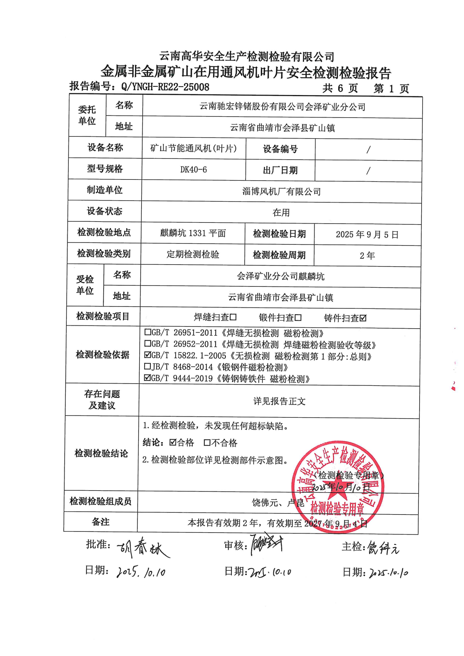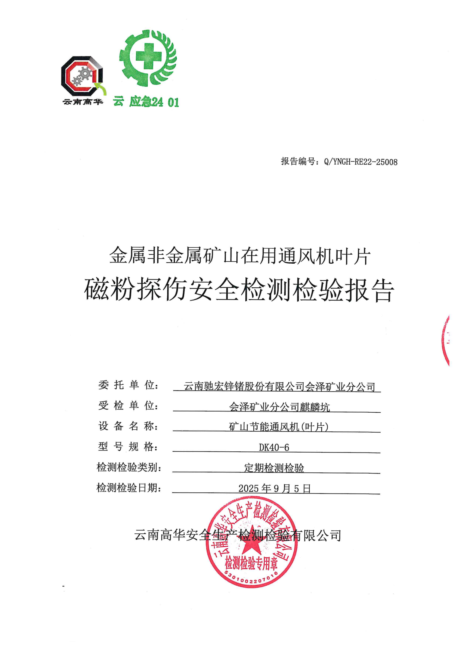 金属非金属矿山在用通风机叶片磁粉探伤安全检测检验报告