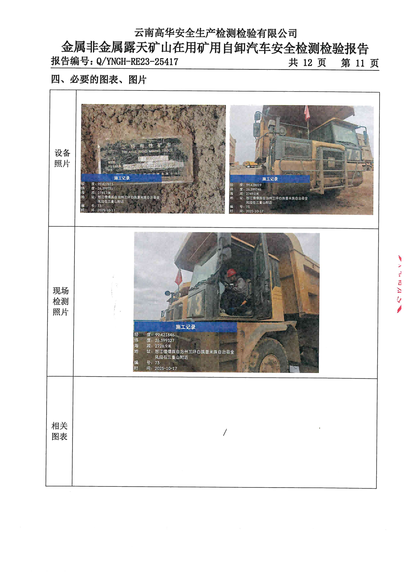 金属非金属露天矿山在用矿用自卸汽车安全检测检验报告