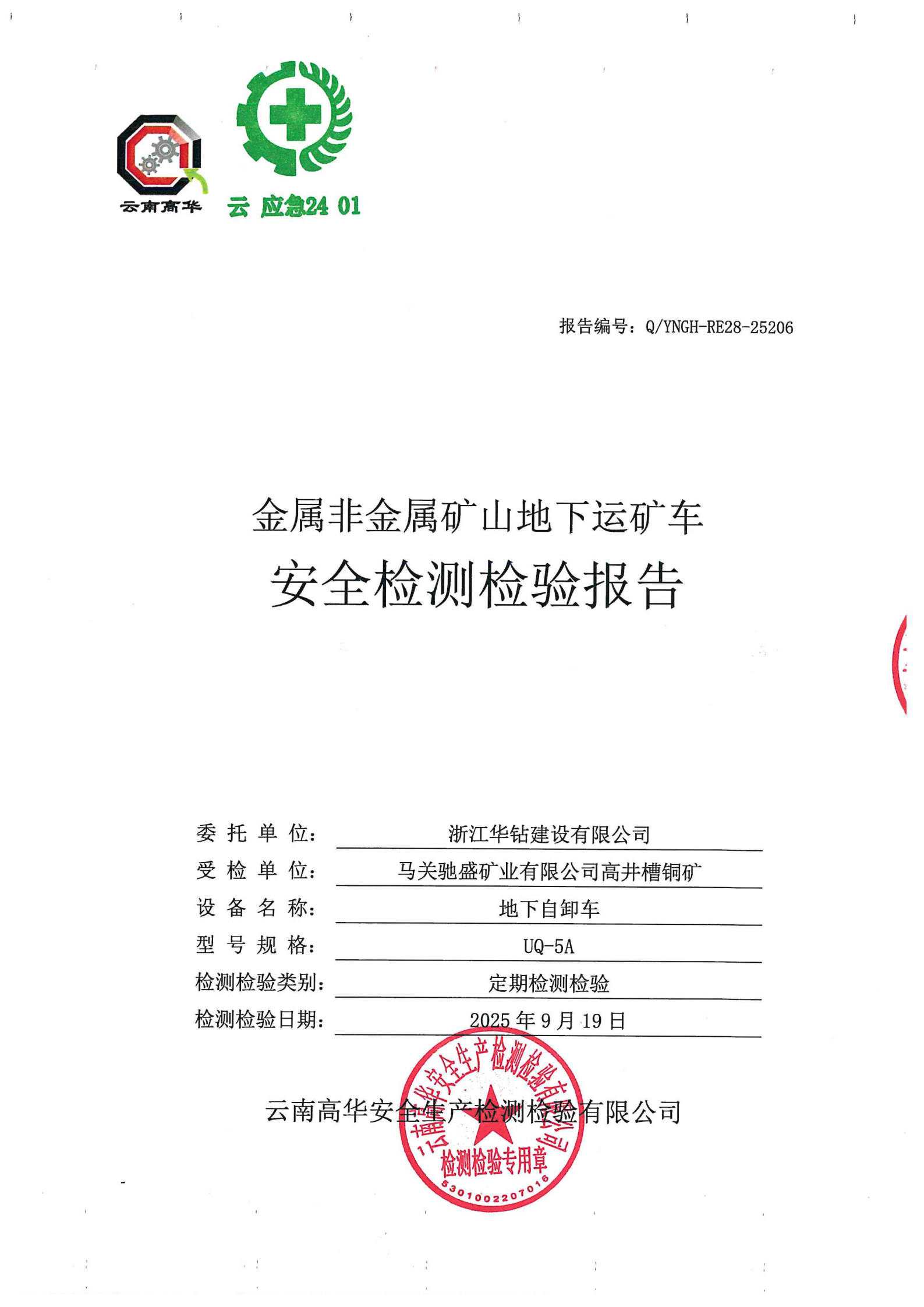 金属非金属露天矿山在用矿用自卸汽车安全检测检验报告
