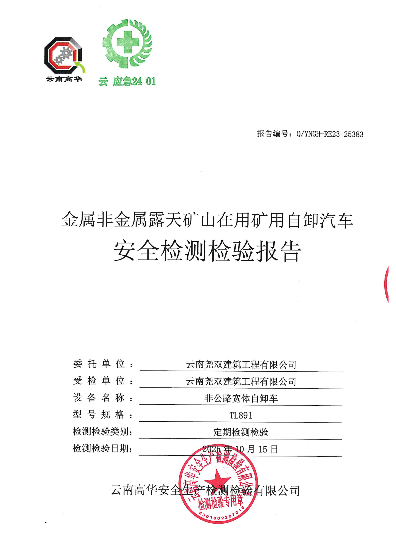 金属非金属露天矿山在用矿用自卸汽车安全检测检验报告