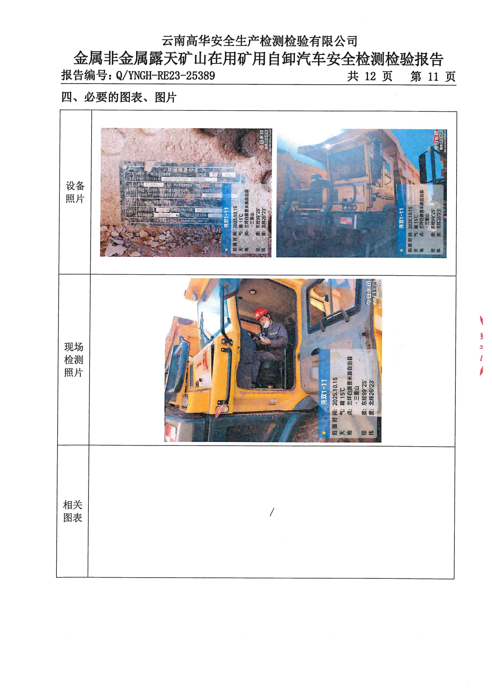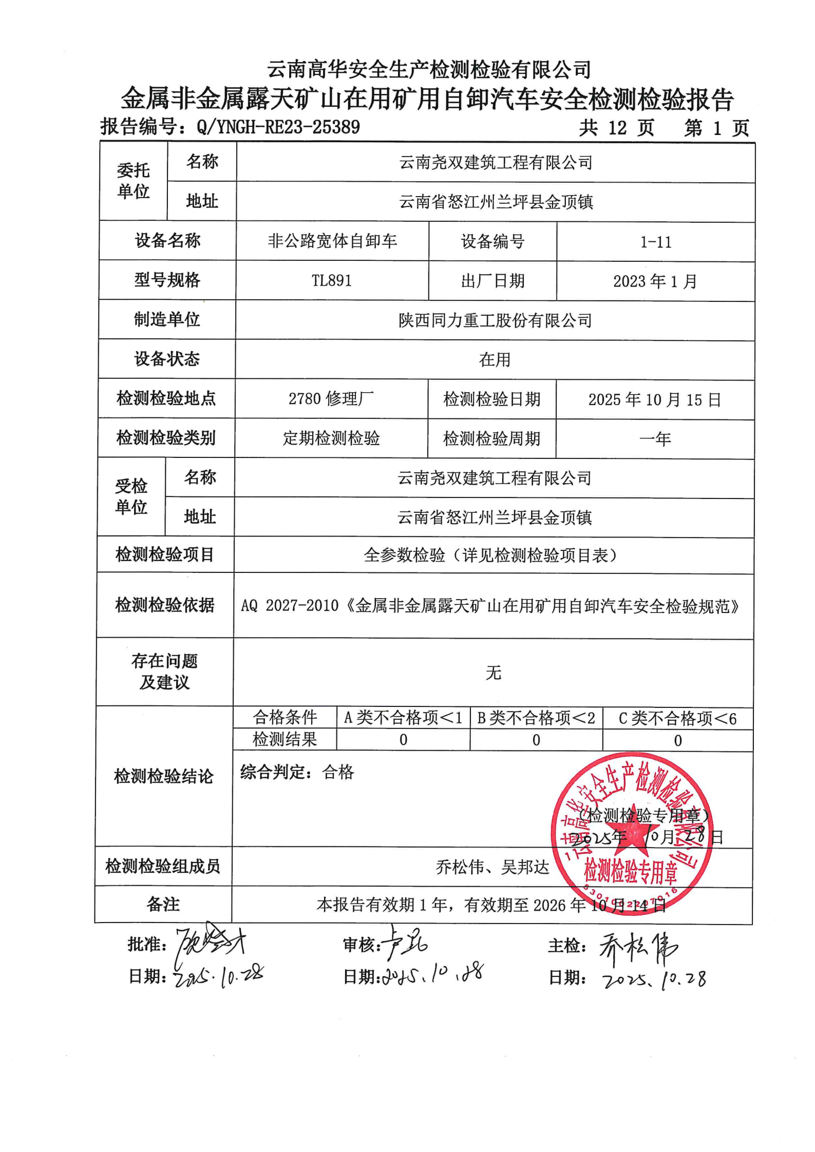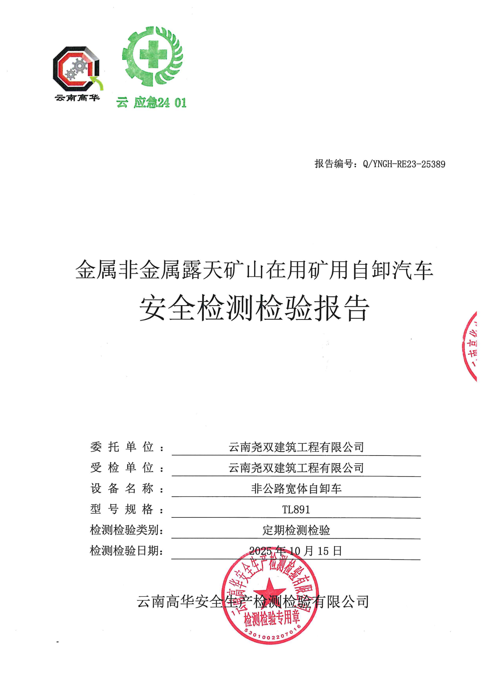 金属非金属露天矿山在用矿用自卸汽车安全检测检验报告