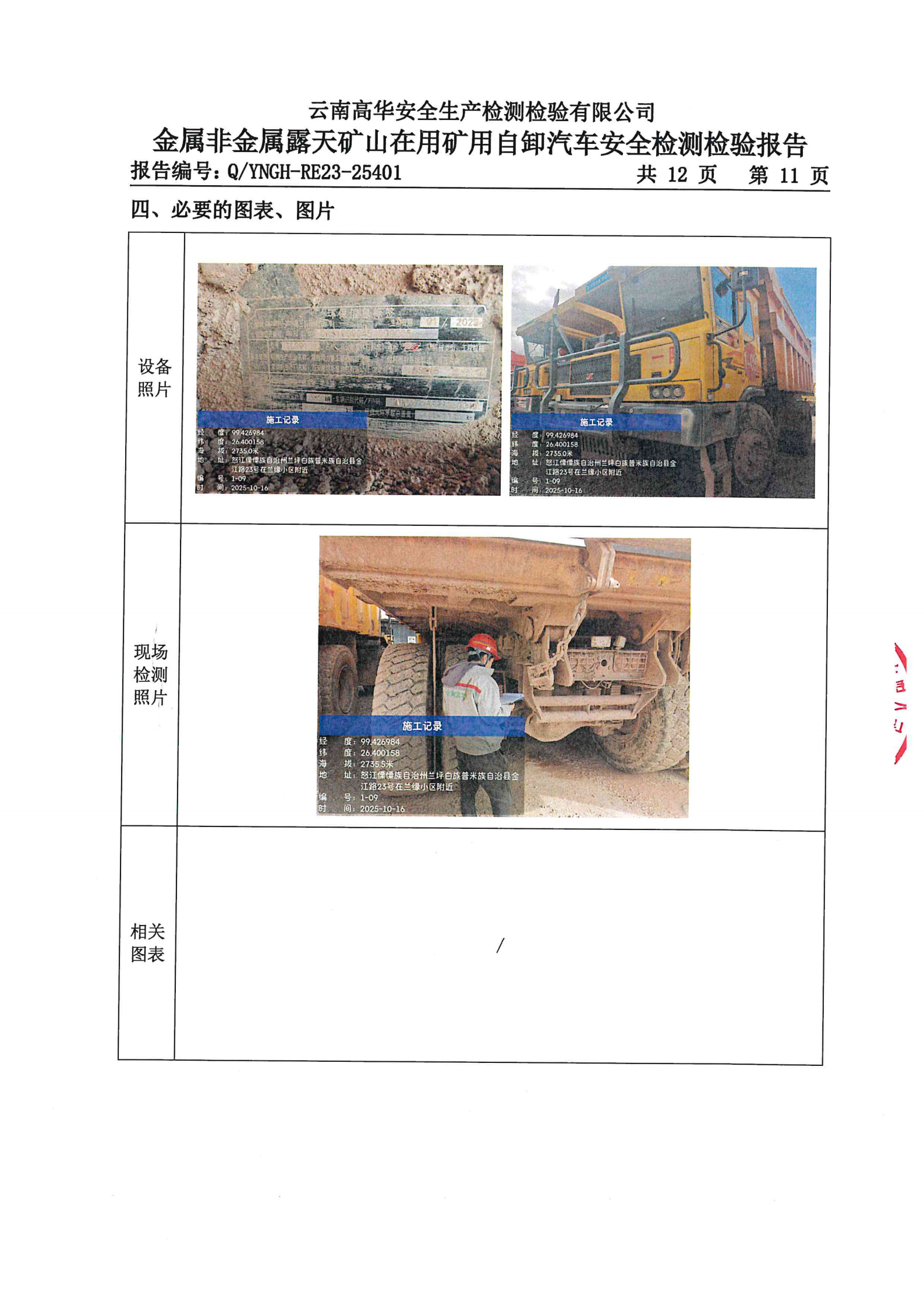 金属非金属露天矿山在用矿用自卸汽车安全检测检验报告