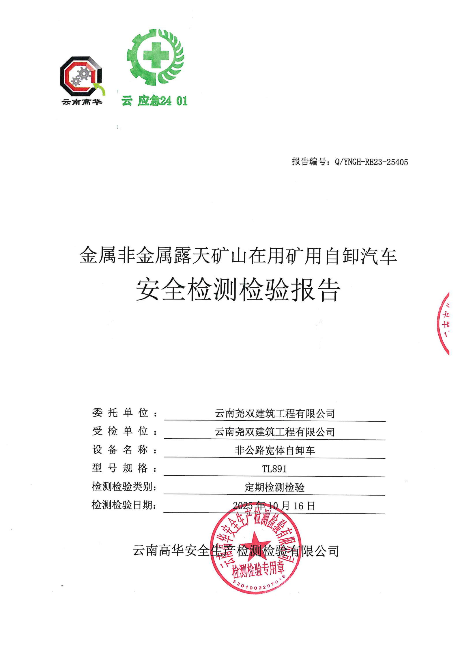 金属非金属露天矿山在用矿用自卸汽车安全检测检验报告