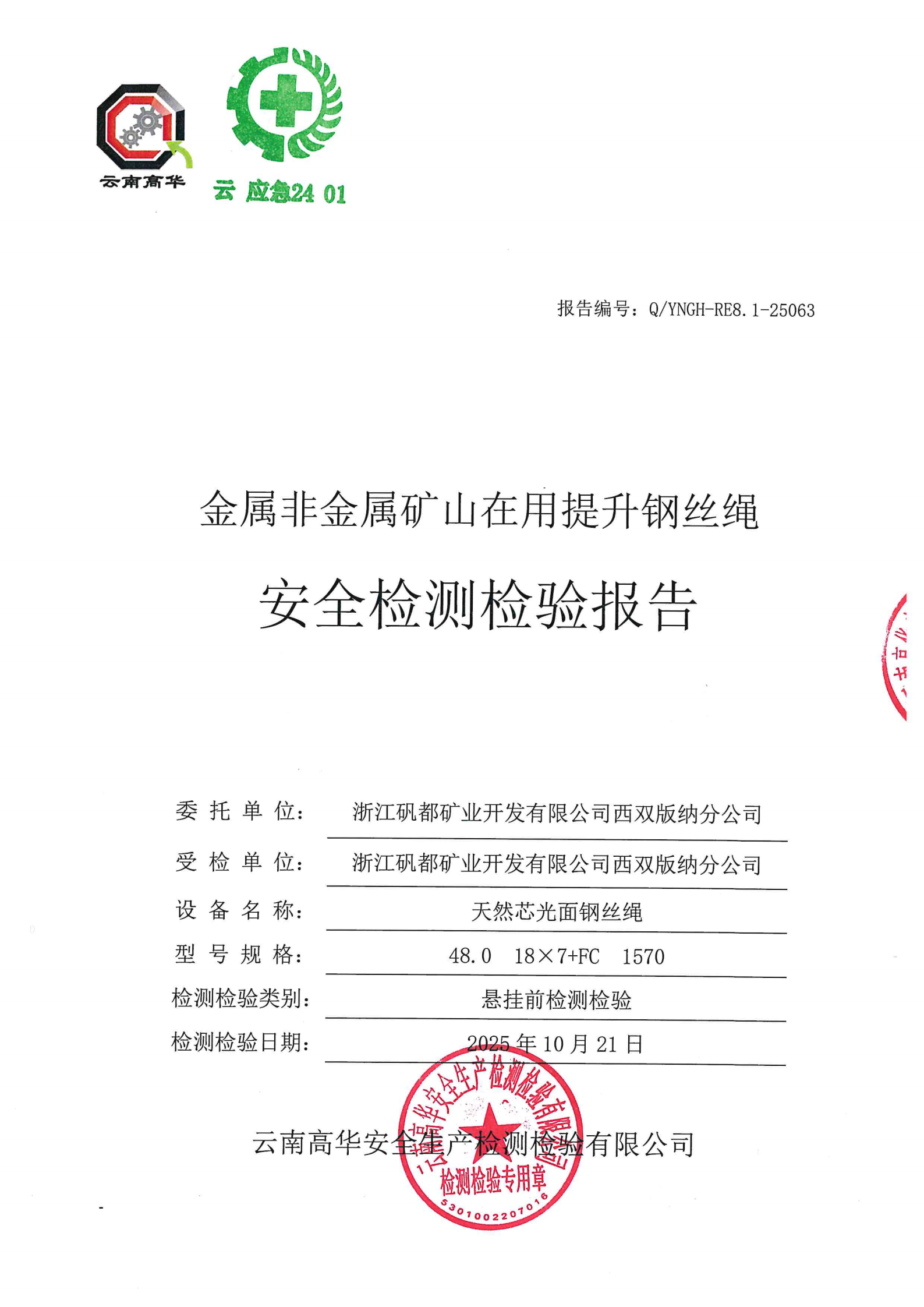 金属非金属矿山在用提升钢丝绳安全检测检验报告