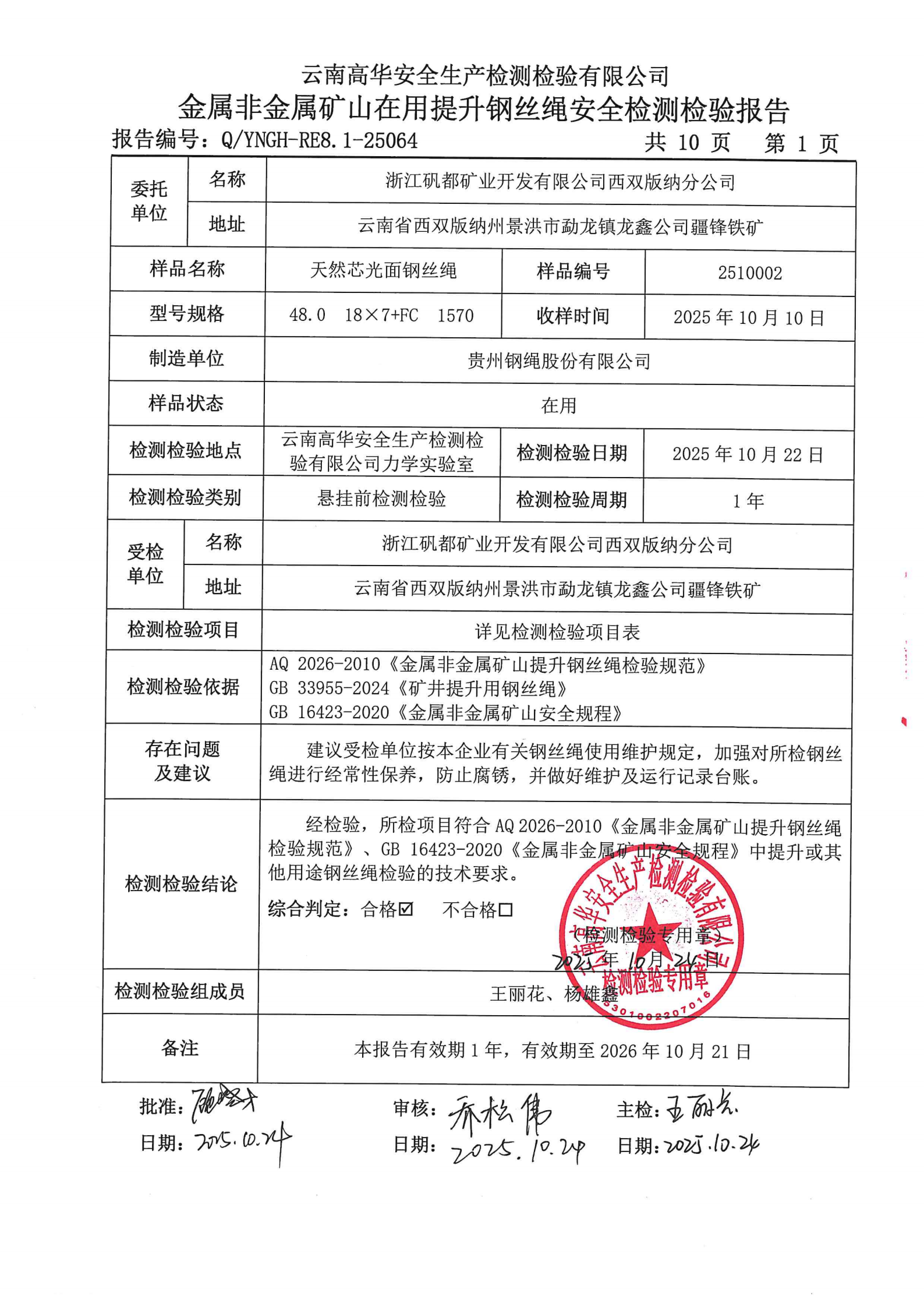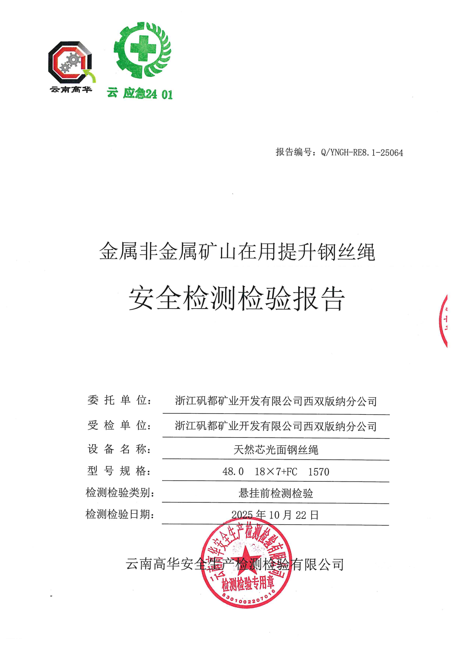 金属非金属矿山在用提升钢丝绳安全检测检验报告
