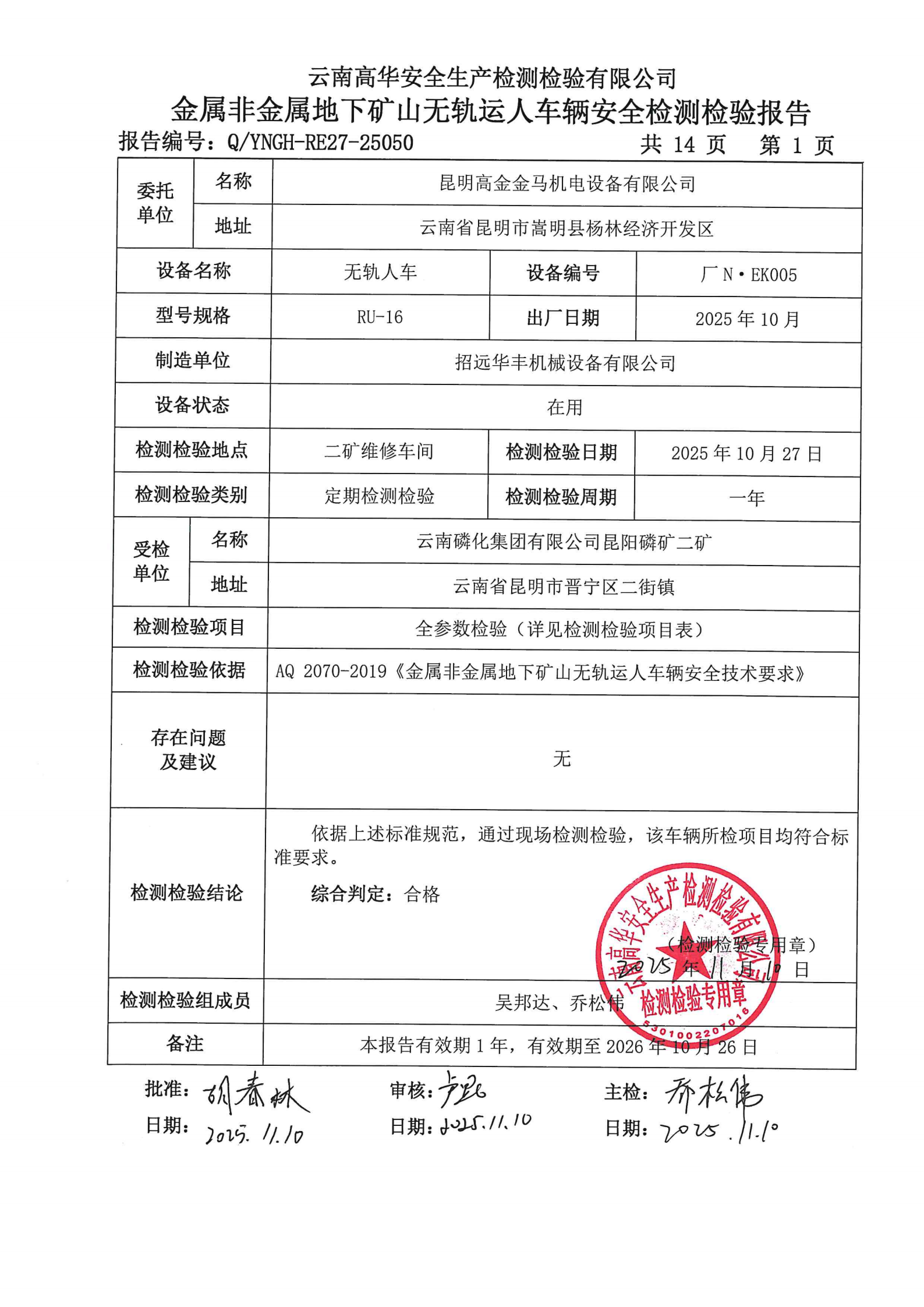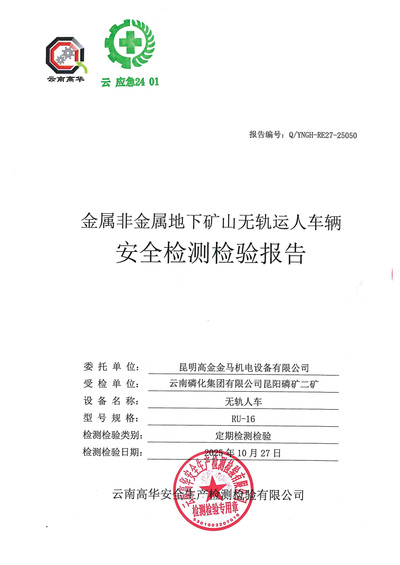 金属非金属地下矿山无轨运人车辆安全检测检验报告