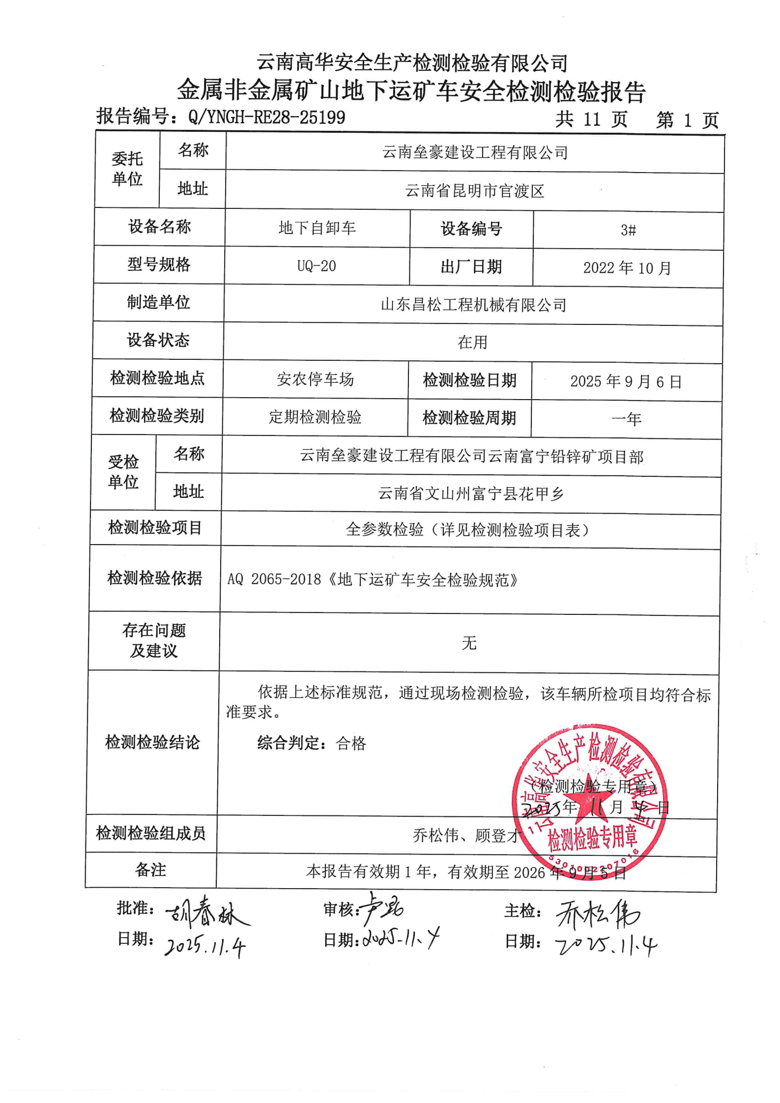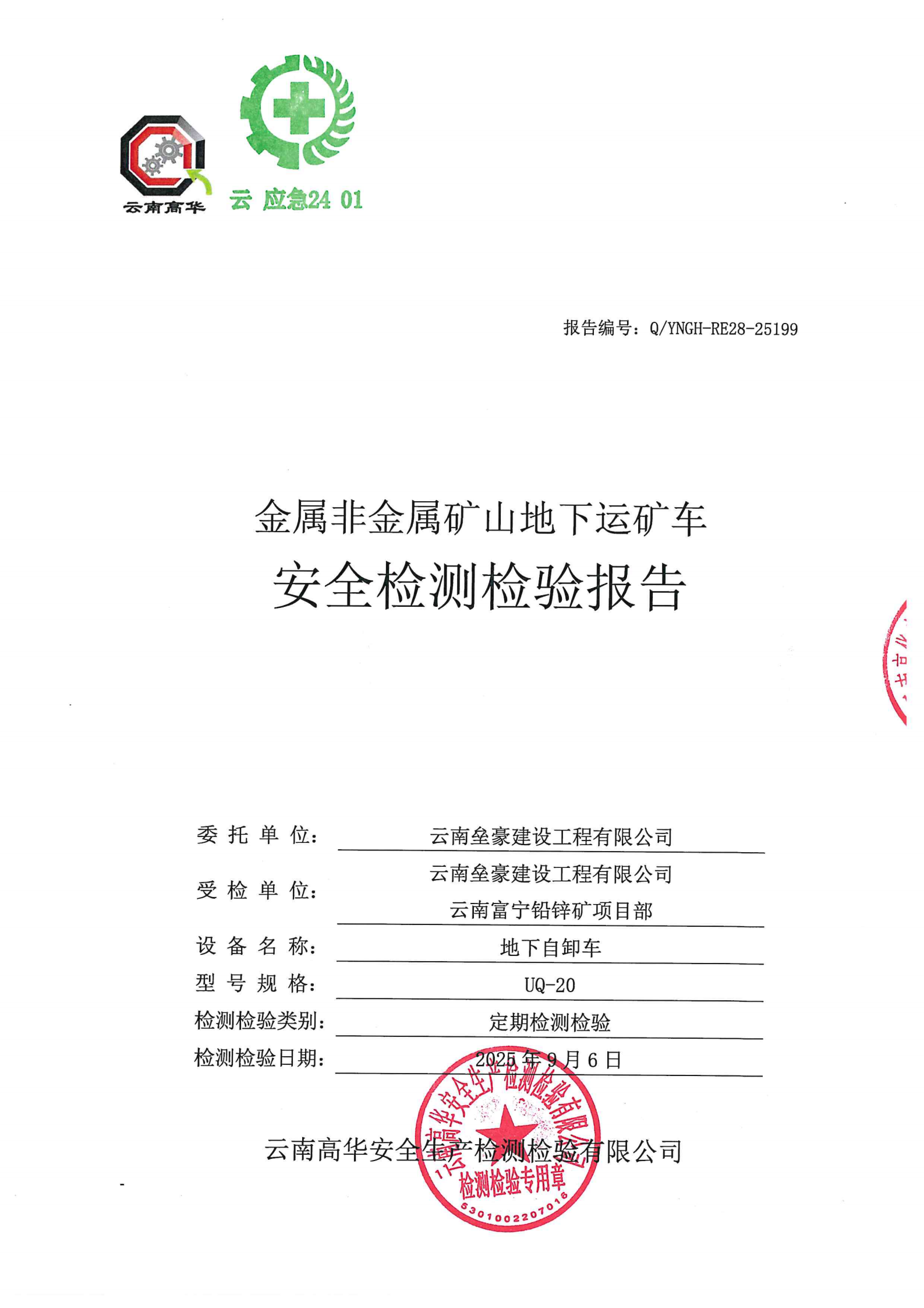 金属非金属在用矿用自卸汽车安全检测检验报告