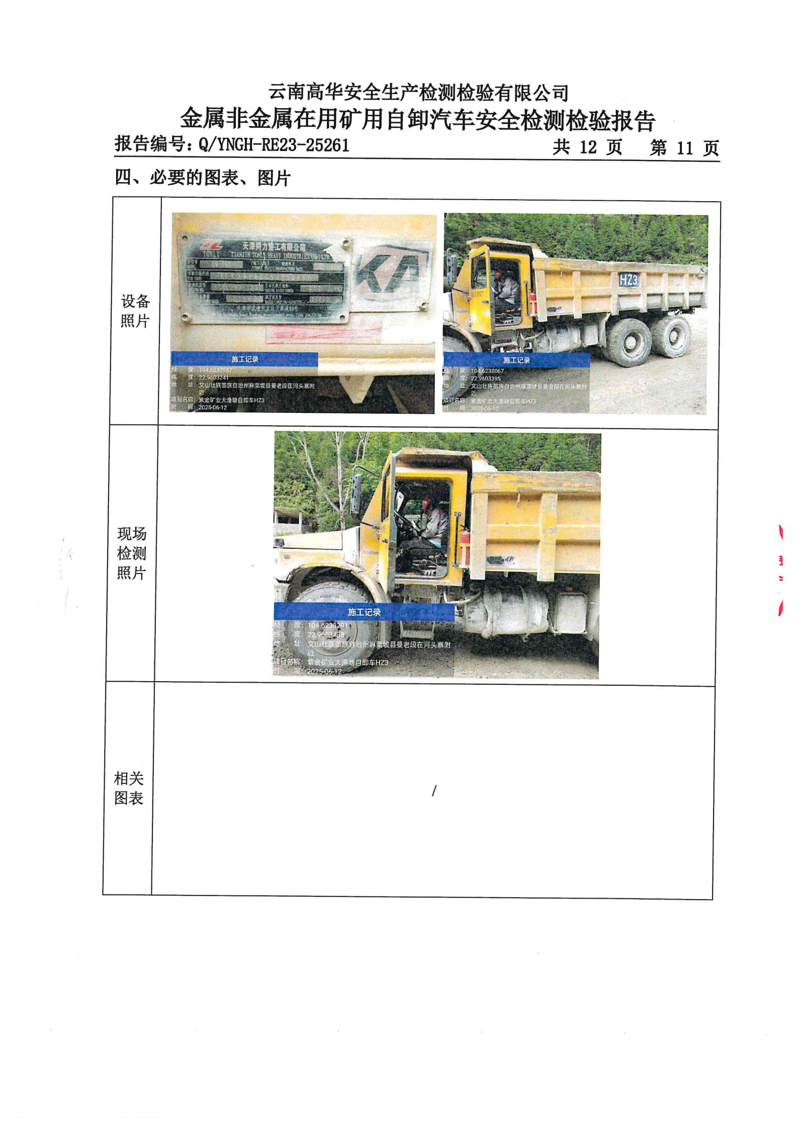金属非金属在用矿用自卸汽车安全检测检验报告